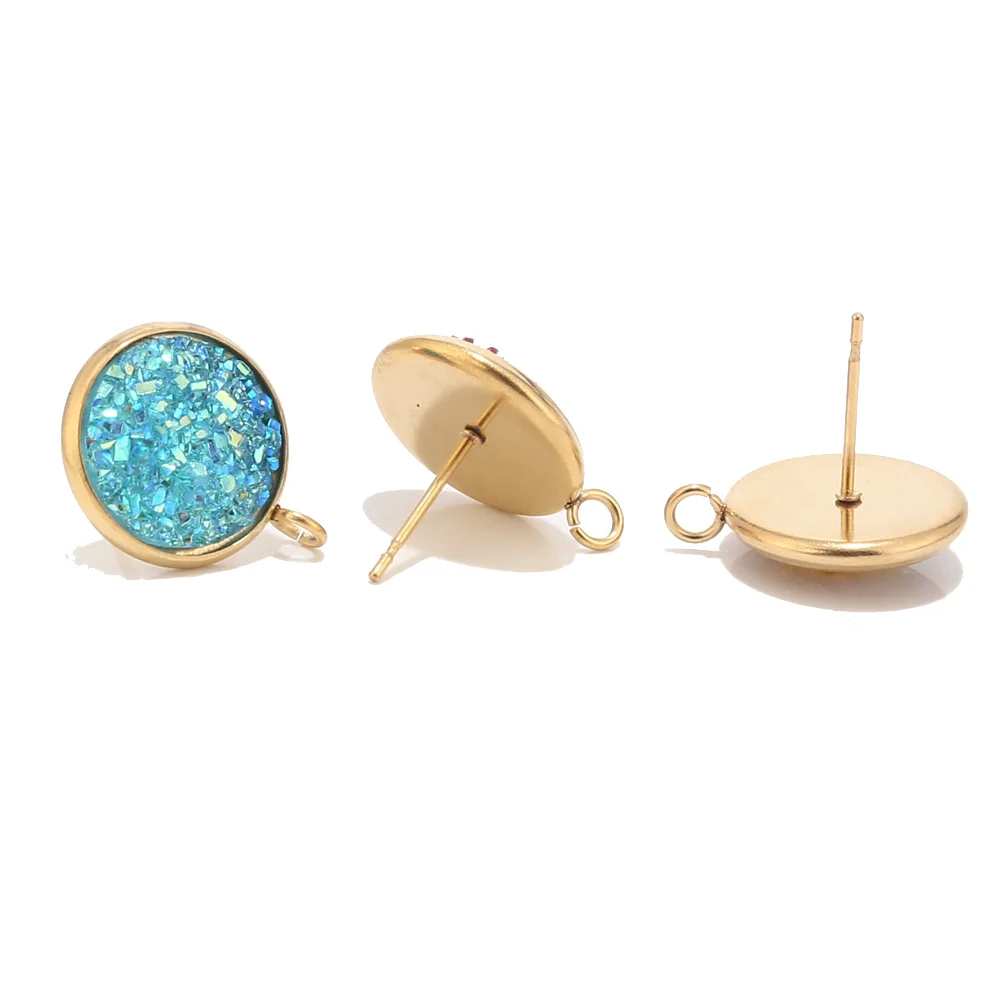10 шт. 12 мм круглая Смола Druzy из нержавеющей стали каменная стойка застежки для сережек с петлей золотые шпильки принадлежности для сережек