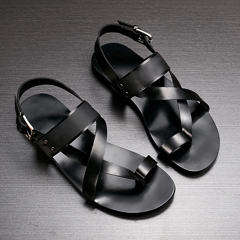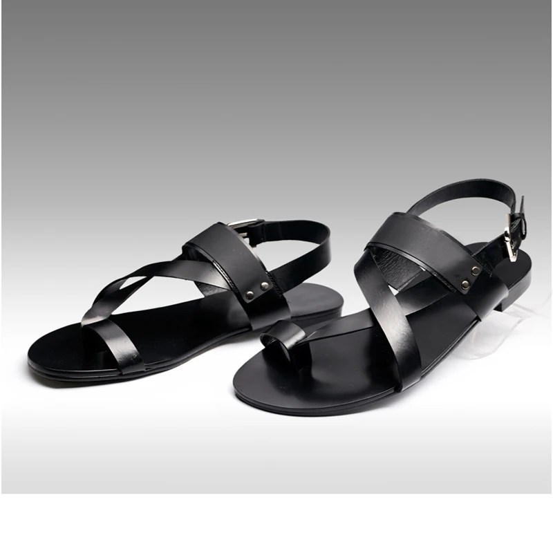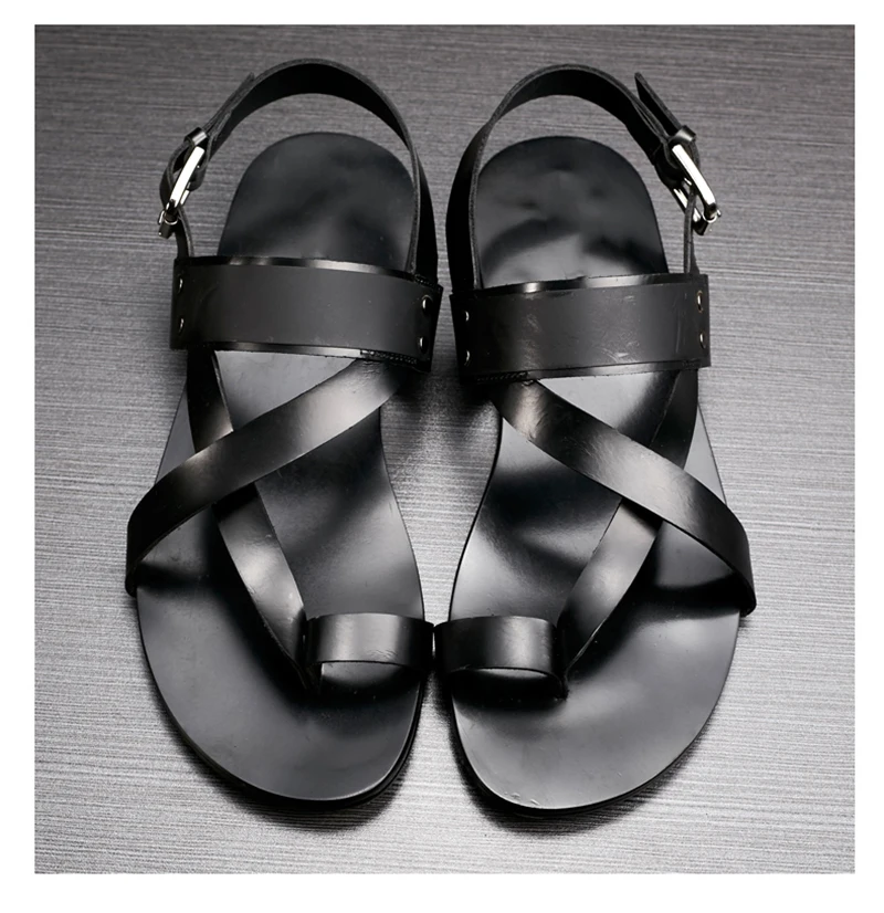 Сандалии-гладиаторы мужские с открытым носком, повседневные босоножки в римском стиле, дизайнерские туфли на плоской подошве, натуральная кожа, тренд Лето, 2022