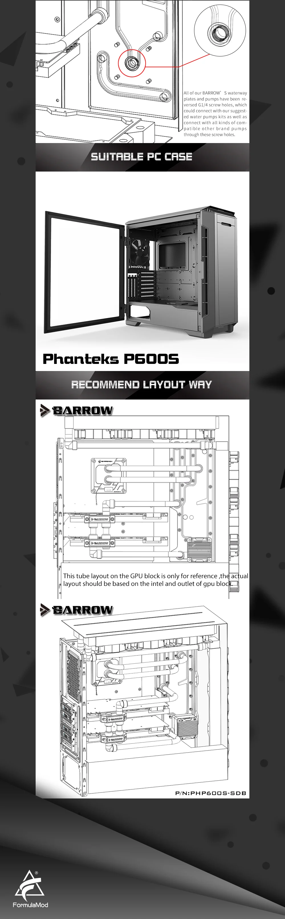 Barrow PHP600S-SDB, доски для водных путей для Phanteks P600S чехол, для Intel CPU Water Block SingleDouble GPU Building