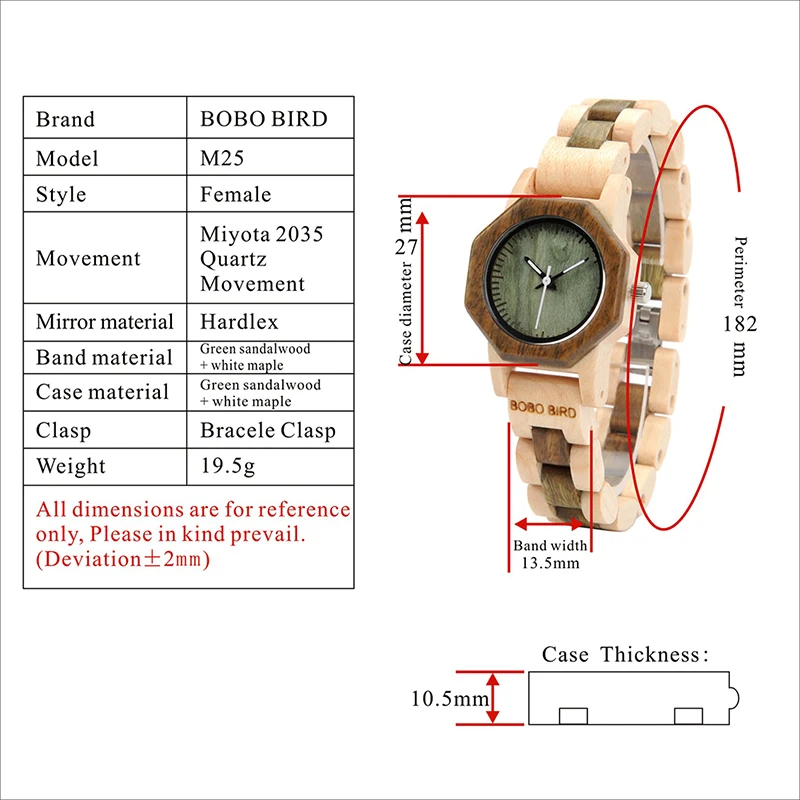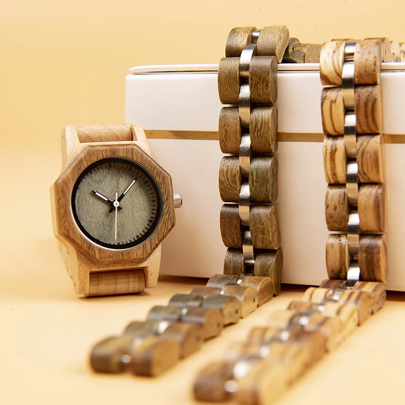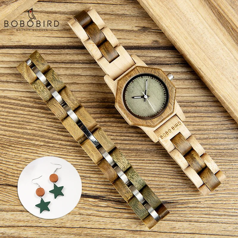 Женские деревянные часы с браслетом, 27 мм, кварцевые часы с японским механизмом в деревянной коробке