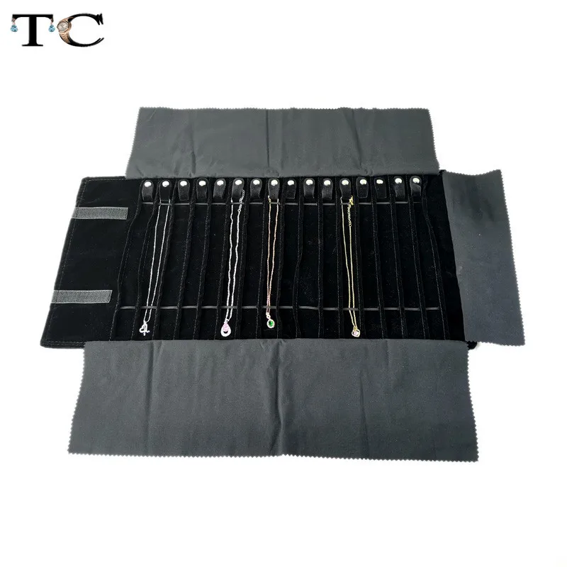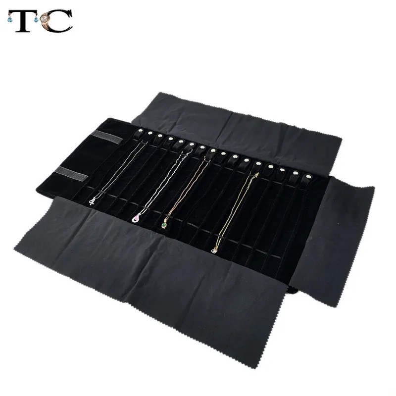 Модная черная бархатная сумка для ювелирных изделий в рулоне, подвесной органайзер сумка для хранения, портативная витрина для ожерелья