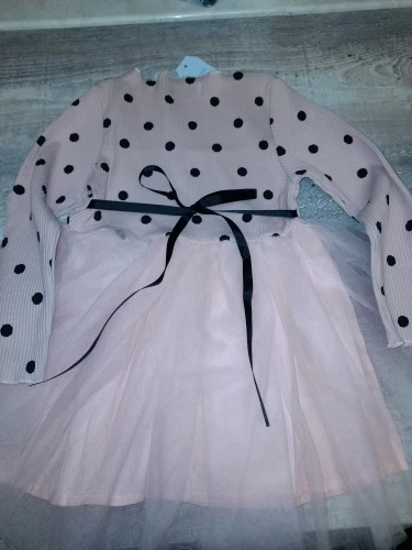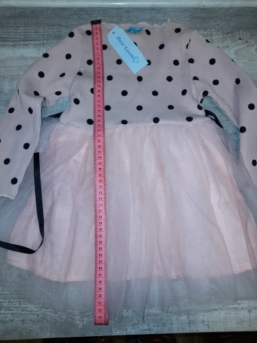 дплатье очень короткое. это не 5т по росту, а 3т. рукава тоже короткие. из 3х заказанных мной платьев это разочаровало и сшить то хорошо и нитки не торчат, но длина .... обидно. ещё один минус горошки пропечатались прям около горловины. на фото видно