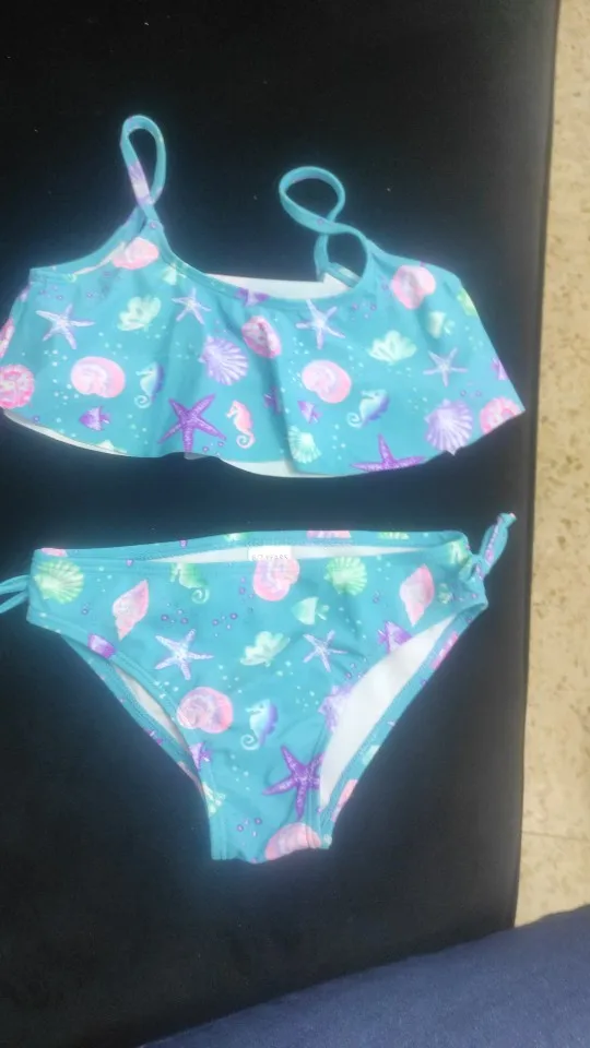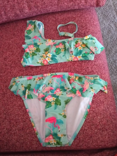 Очень красивый, качественный купальник. Брали размер поменьше, девочка худенькая и высокая.