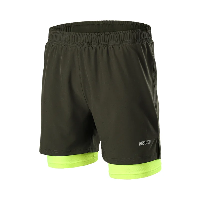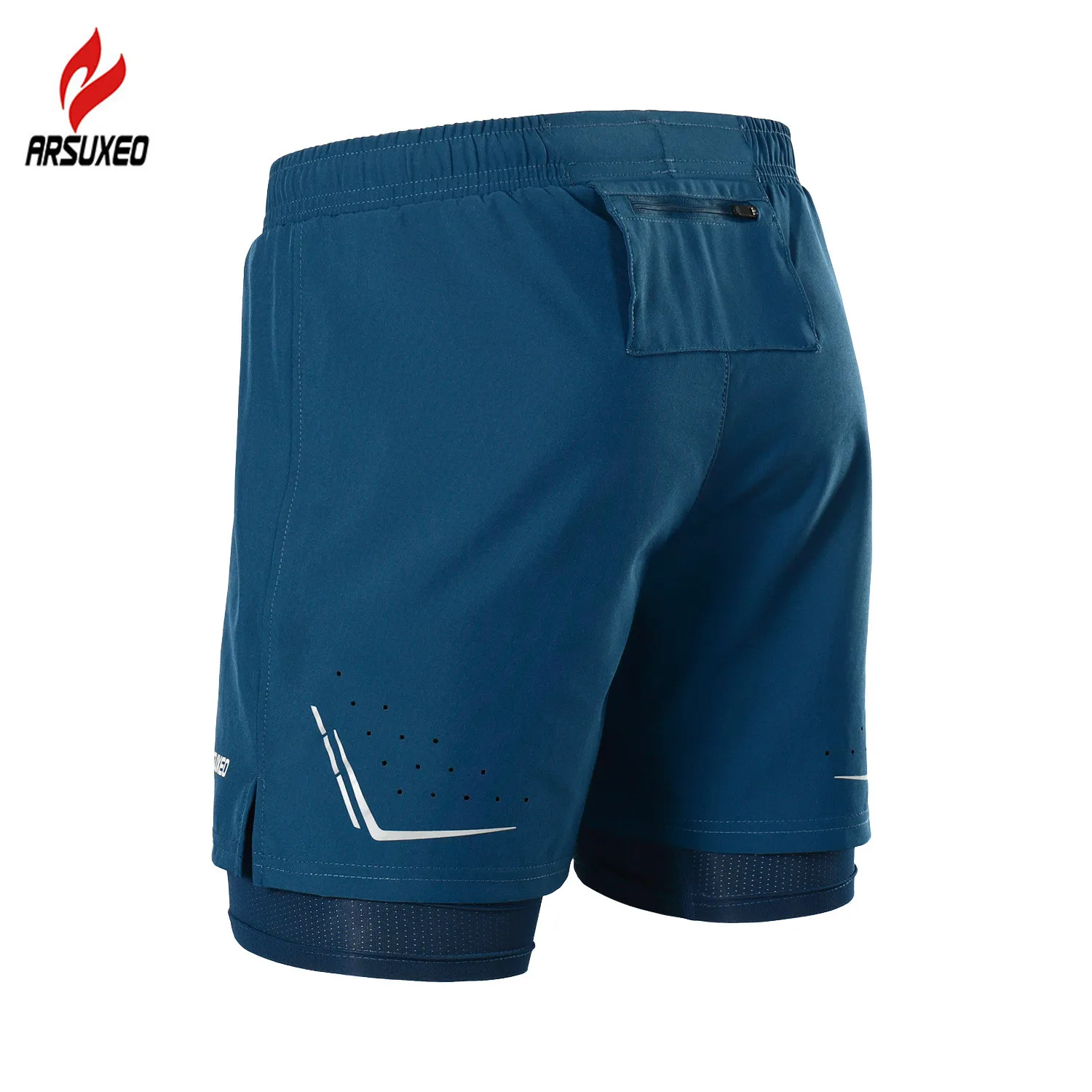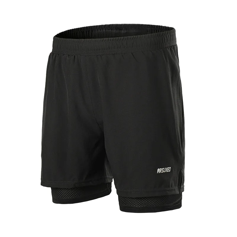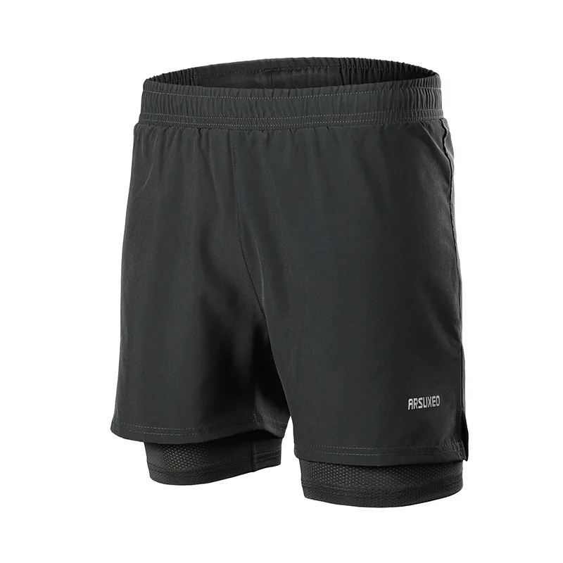 Шорты мужские 2 в 1 ARSUXEO, компрессионные, светоотражающие, быстросохнущие, для бега, тренажерного зала, фитнеса, марафона, спортивные, с карманом на молнии