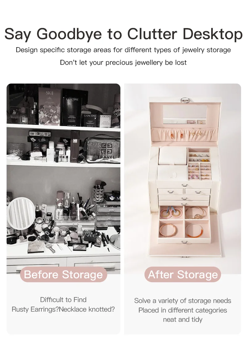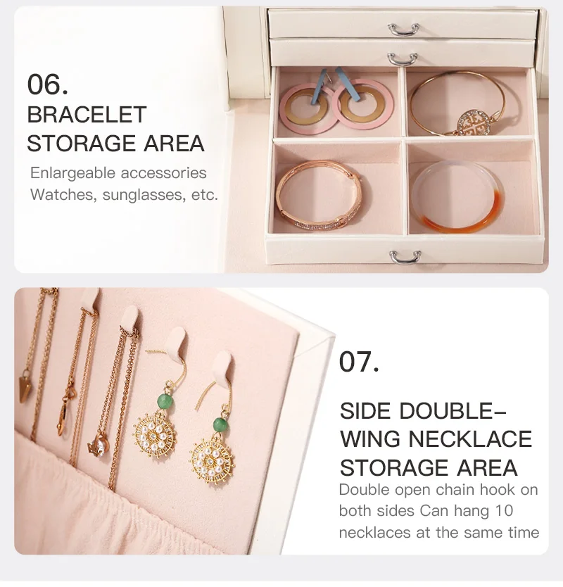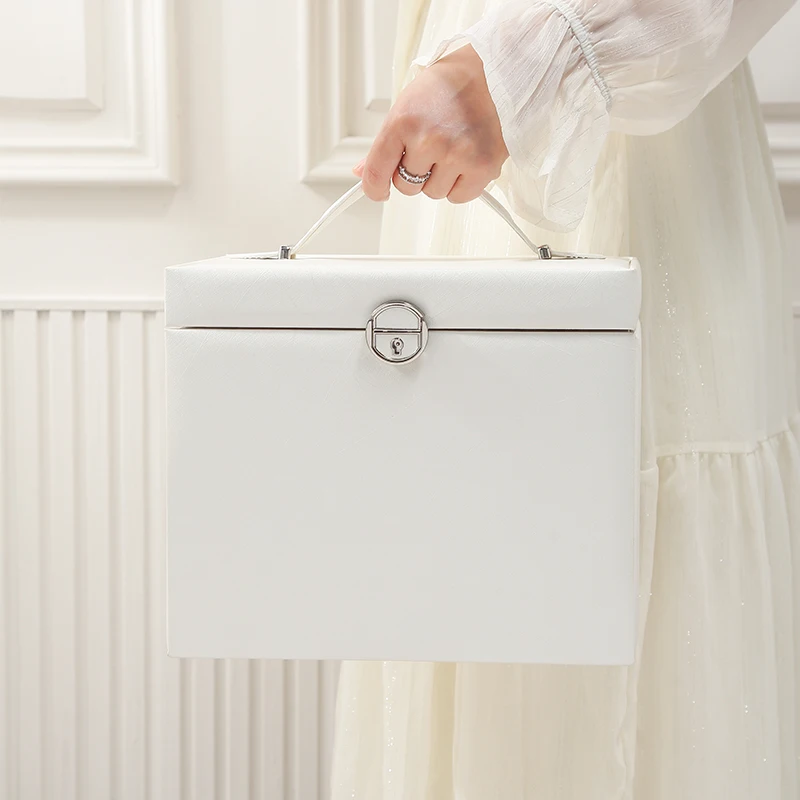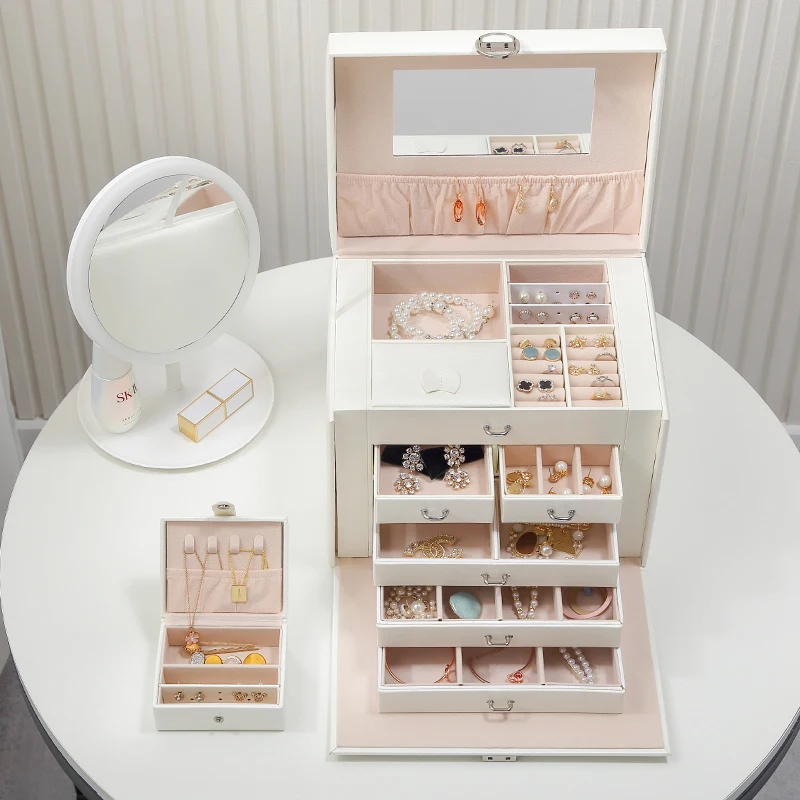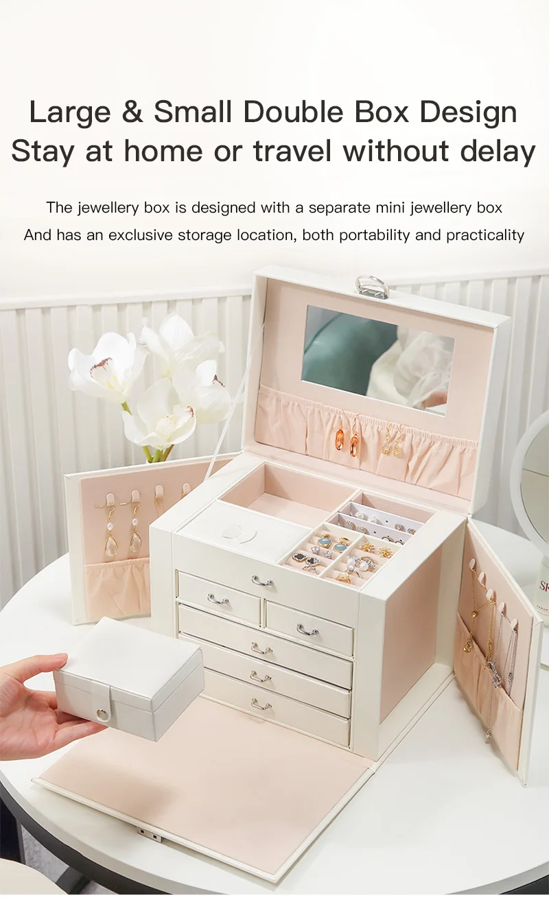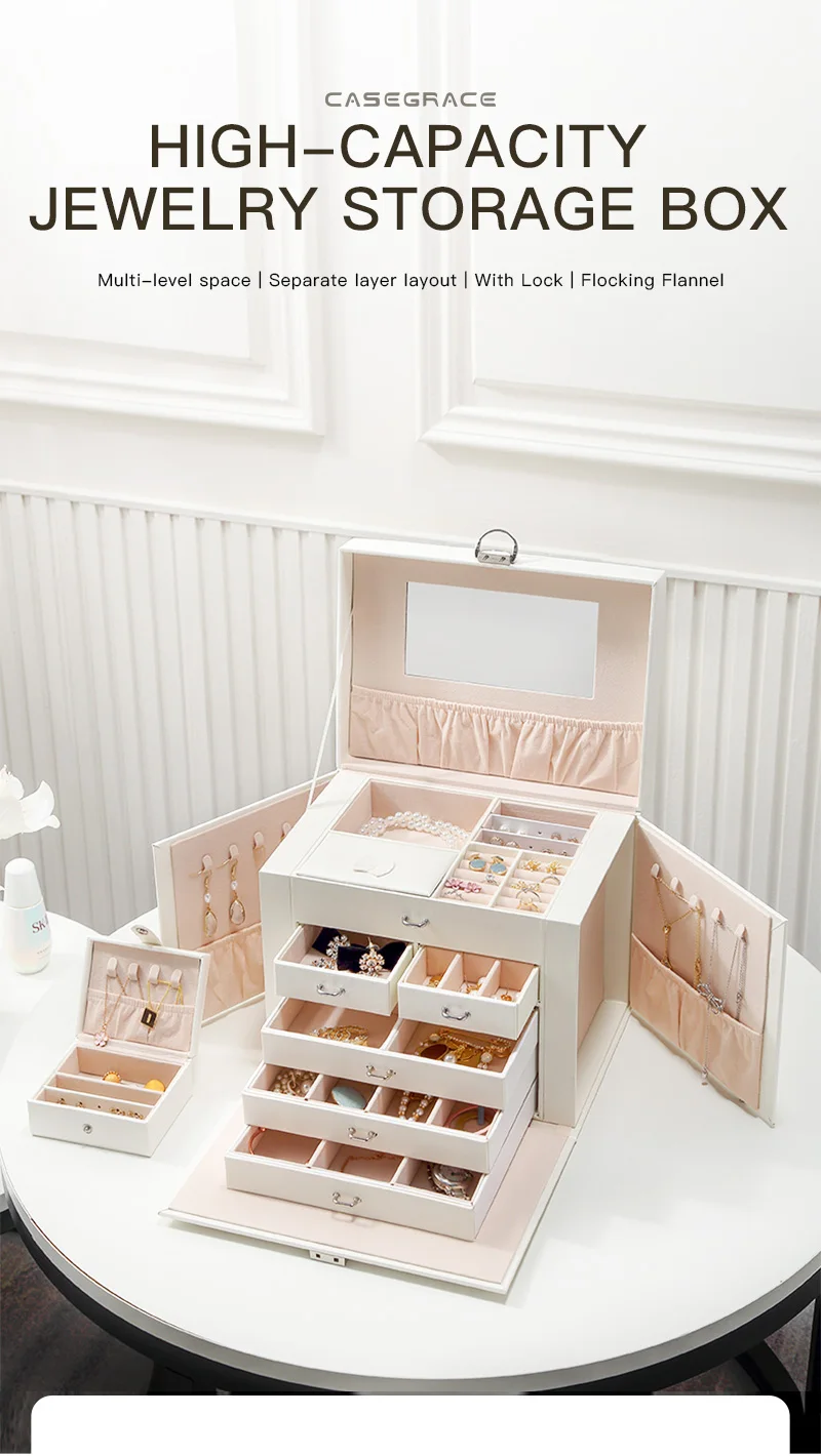 Чехол grace, Роскошная большая шкатулка из искусственной кожи, органайзер, серьги, кольцо, ожерелье, ящик для хранения ювелирных изделий, чехол для хранения с маленькой шкатулкой