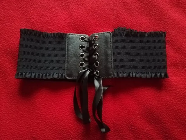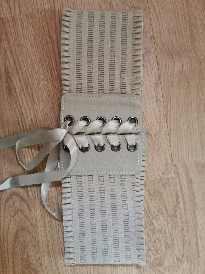 очень хорошего качества ремень,нитки нигде не торчат,очень упругий и хорошо подчеркивает талию.