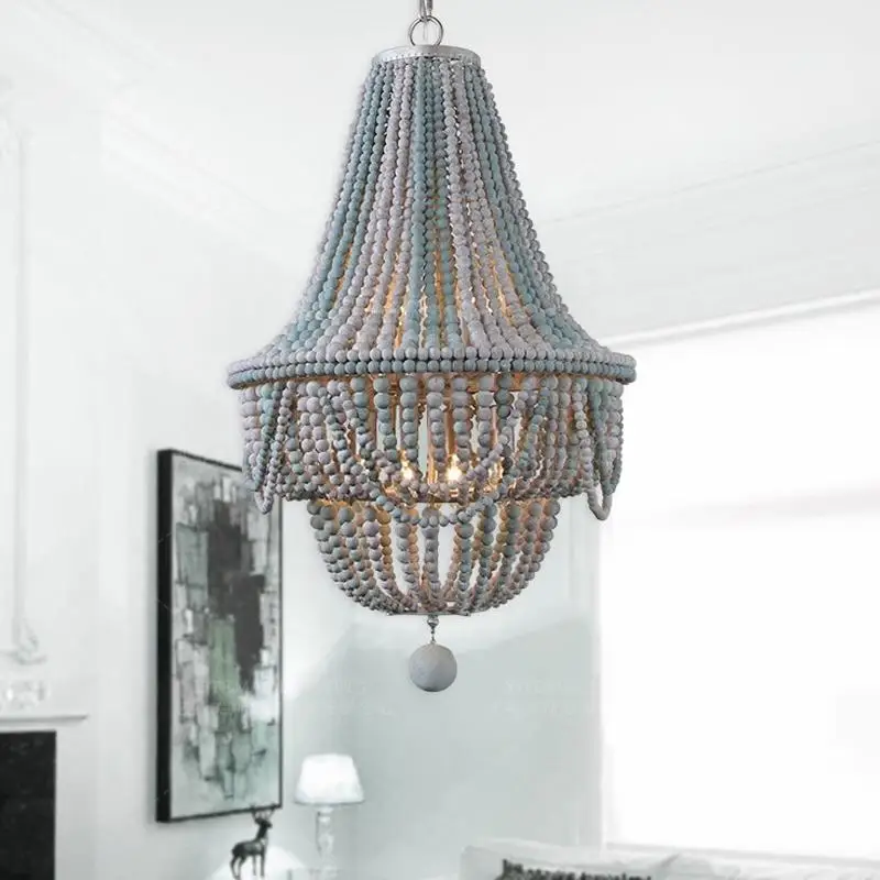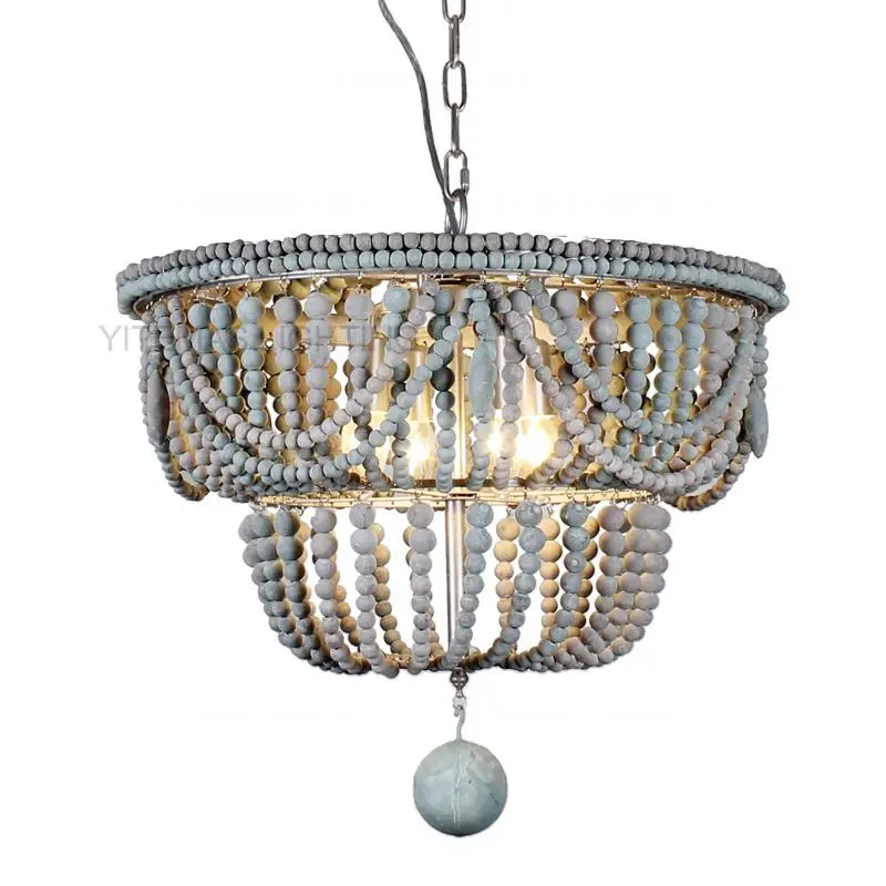 Деревянная люстра во французском стиле, Скандинавская лампа в ретро стиле, винтажная, промышленная, с бусинами, Подвесная лампа для спальни, кухни