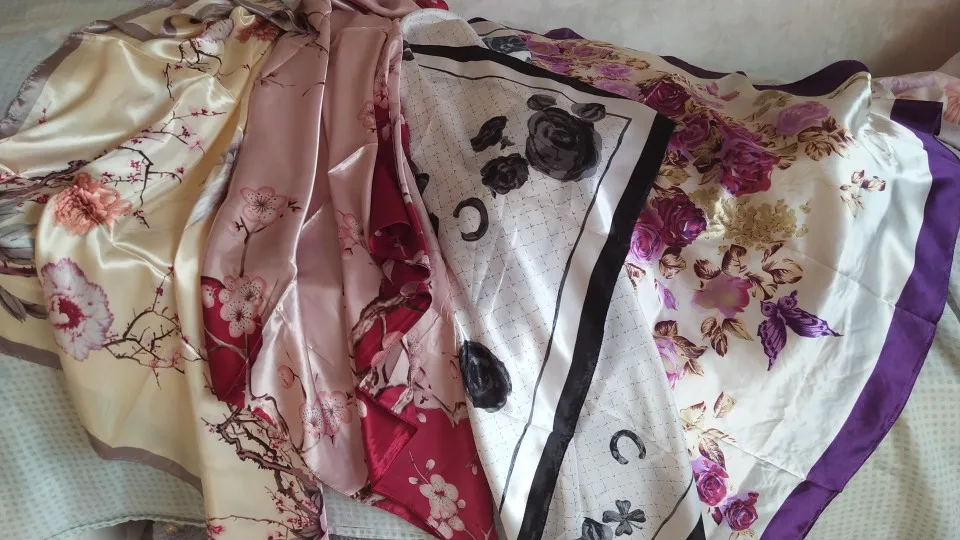 Милые шарфы, шелковистая гладкая ткань и красивый цветочный дизайн. Рекомендуем!