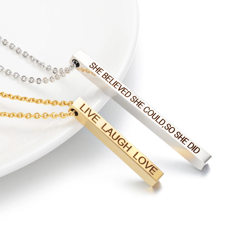 Квадратное ожерелье унисекс с гравировкой с четырех сторон, из нерж...