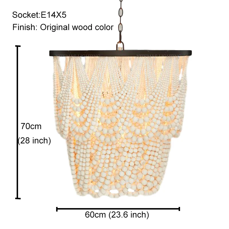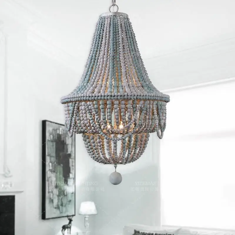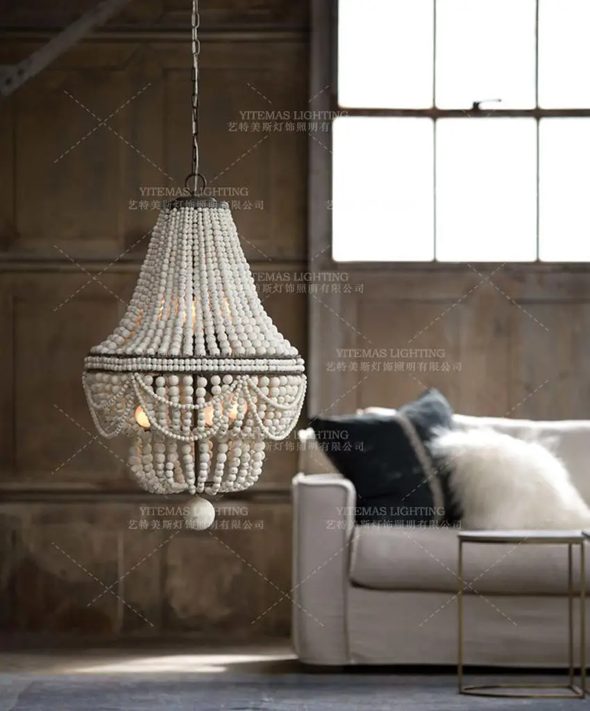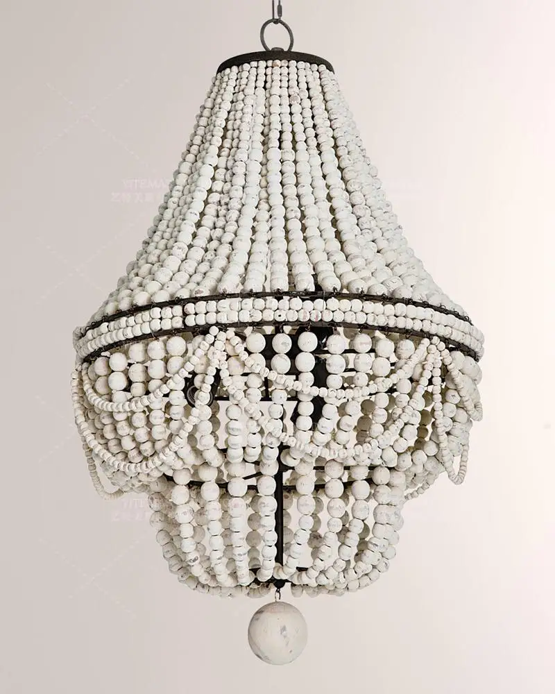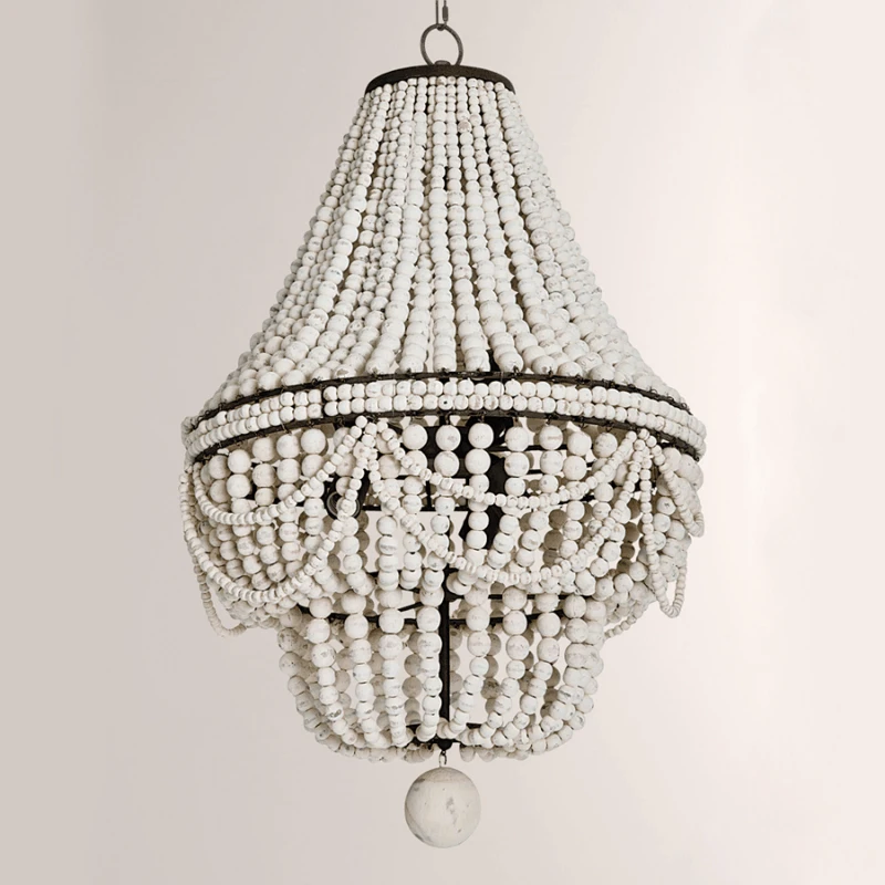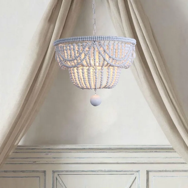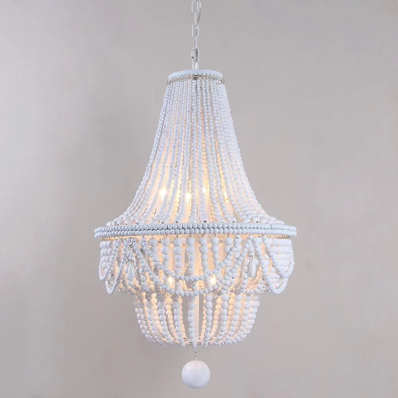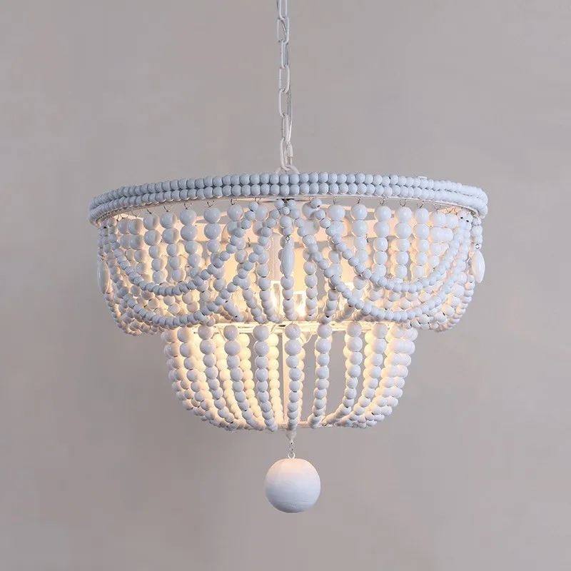 ВинтажнаяРетролюстра из белого дерева, большаядеревяннаялюстра из бисера для спальникухнидетейгостиной, подвесной светильник