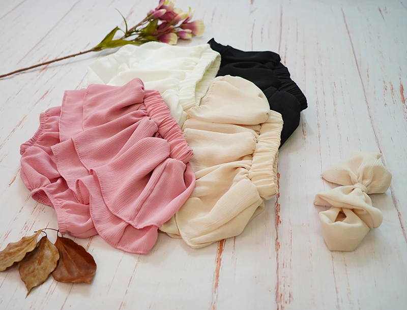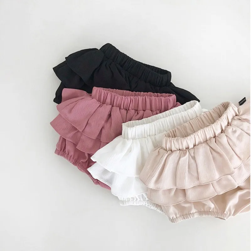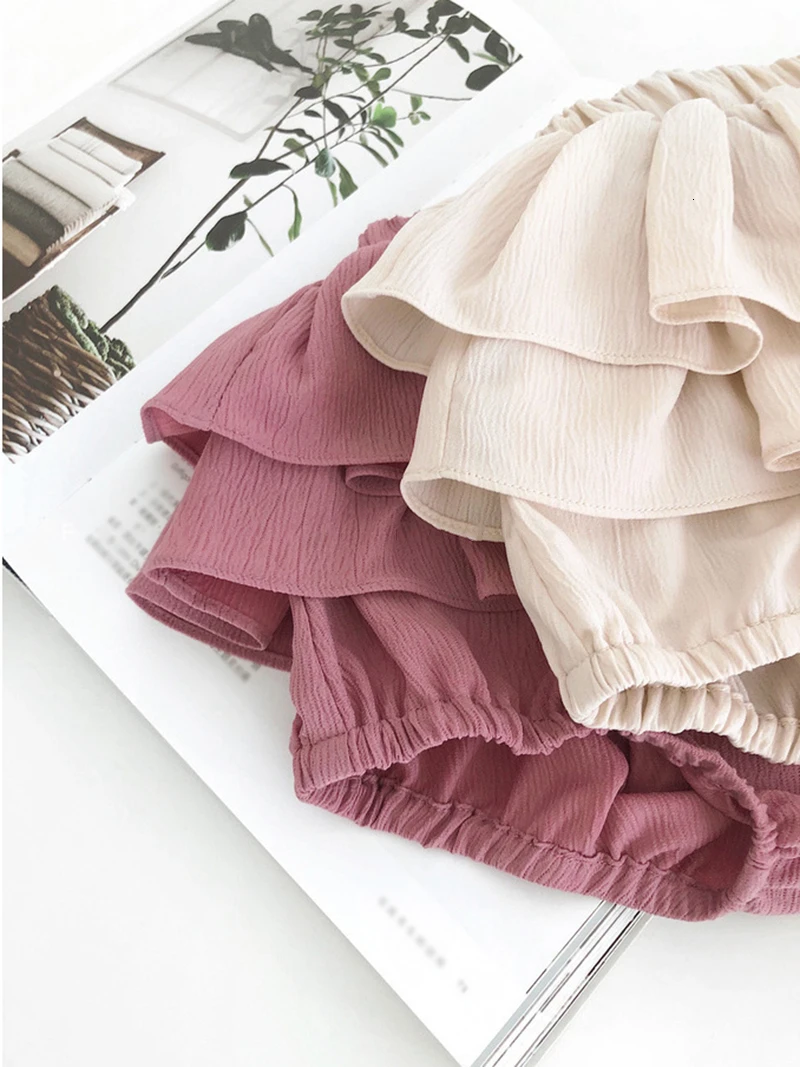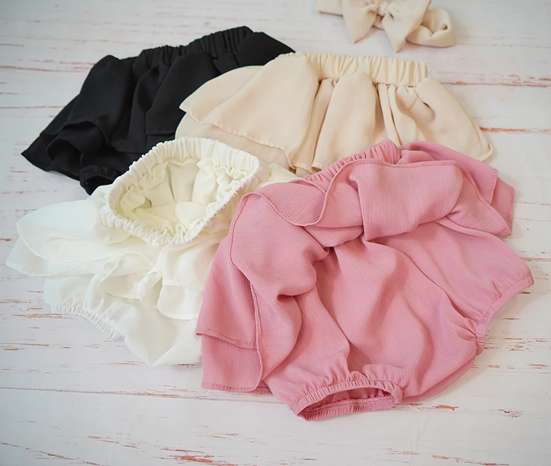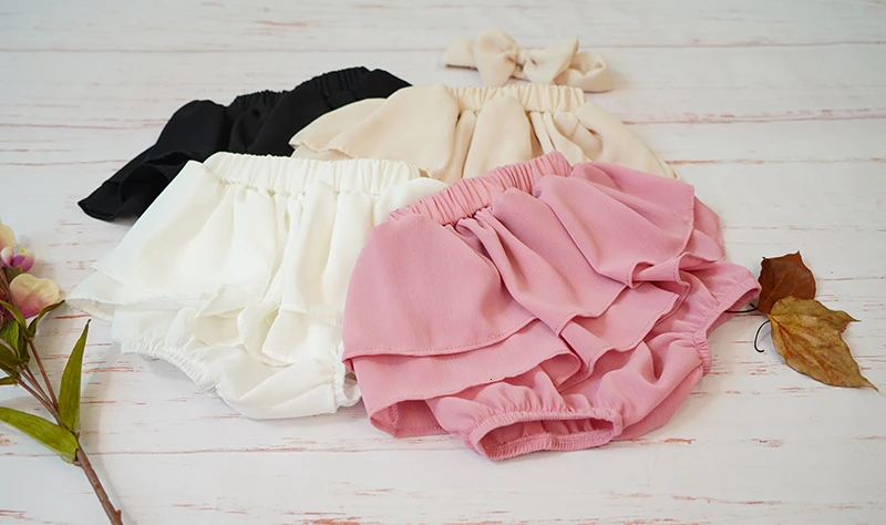 Короткие штаны с оборками для маленьких девочек; Новинка 2019 года; Летние шаровары-подгузники большие штаны розового и бежевого цвета; 12 месяцев