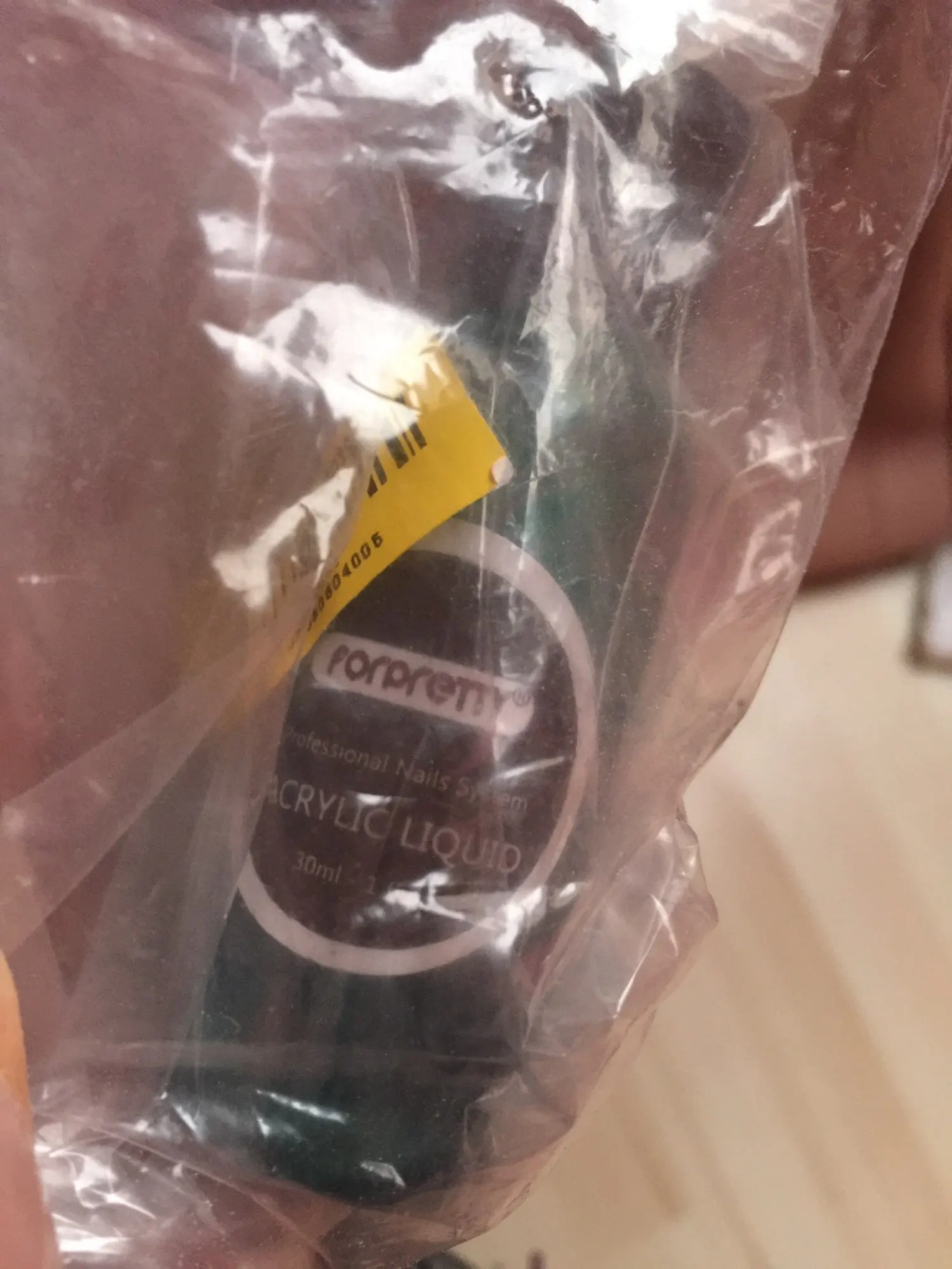 Бутылка профессиональной акриловой жидкости для создания акриловых ногтей или смешивания с кристаллическим порошком.