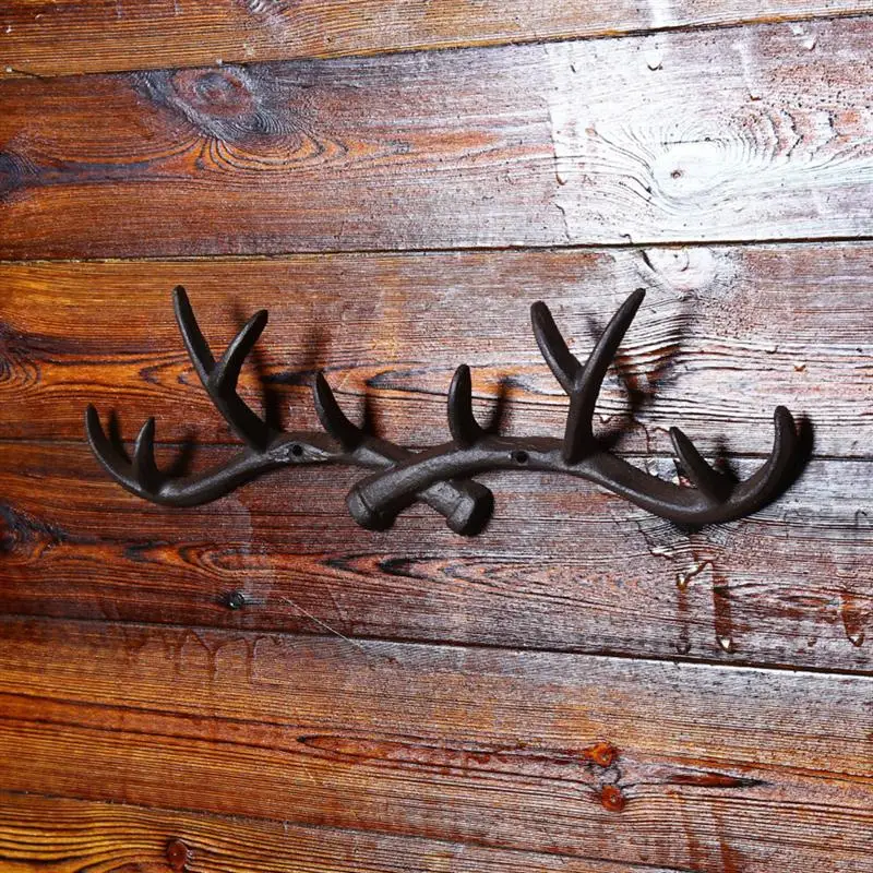 Вешалка с крючками, 1 шт., настенная, декоративная, из чугуна, с оленьими рогами, настенные крючки для пальто, полотенца, шляпы, ключей