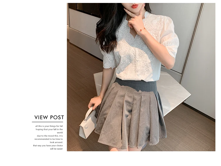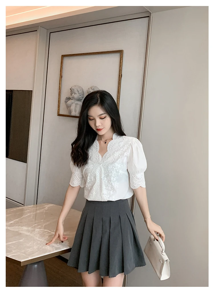 Летнее платье размера плюс белые женские рубашки с кружевом Повседневный однобортный Цветочная блузка для женщин с v-образным вырезом Женская одежда, блузки и рубашки, 13102