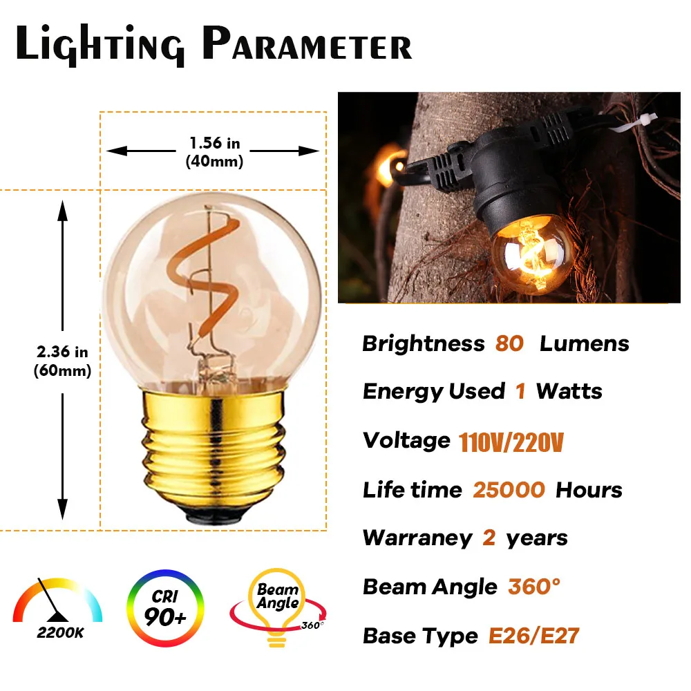 LED E27 220 В Янтарное стекло G40 мини Глобус лампа накаливания замена струнный светильник лампа 1 Вт 2200 к декоративный Домашний Светильник ing с регулируемой яркостью