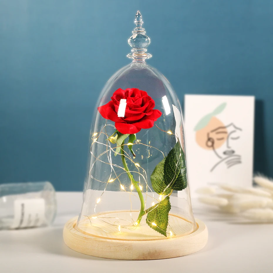 Красавица и чудовище, красная роза, искусственные цветы, Роза в стеклянном куполе, романтическое украшение на Рождество, День Святого Валентина, подарок на день рождения