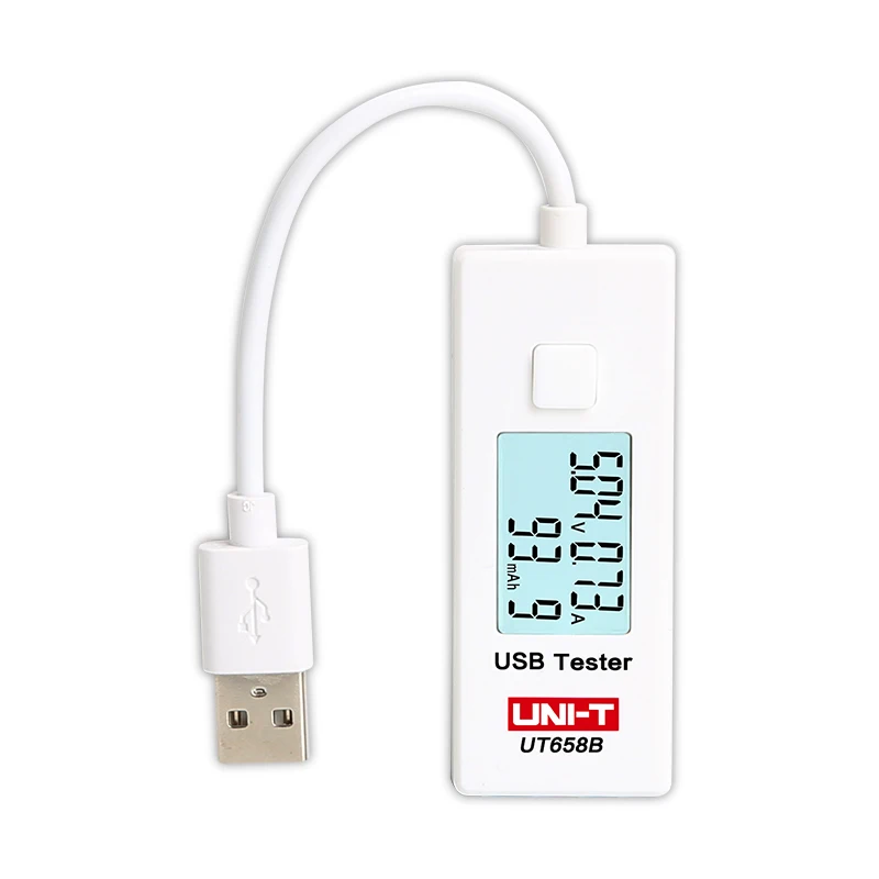 UT658B в качестве нового поколения usb-тестера, является продукцией 3C для зарядного устройства, мобильного питания и другого зарядного устройства, проверка качества новых инструментов, в любое время для контроля эффективности зарядки, защита зарядного оборудования. Добавлен провод длиной 100 мм, использование более свободное и удобное. В то же время UT658B с CE, ROHS и FCC сертификации, чтобы обеспечить использование безопасности.Параметры продукта:Отображение напряжения зарядки зарядного устройства, тока и расчета емкости электрической батареи 3C