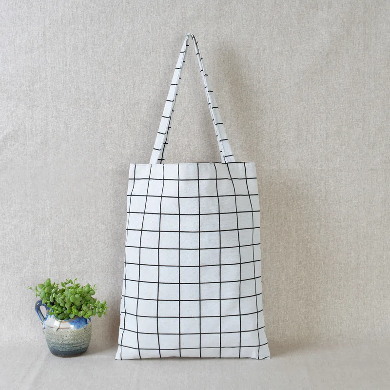 Женская сумка для покупок клетчатые хлопчатобумажные холщовые сумки...