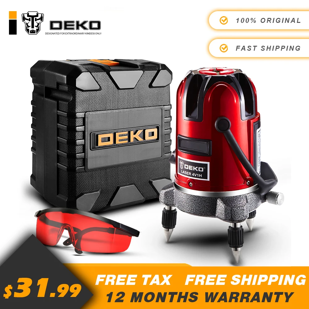 Лазерный уровень DEKO LL5 Series 5 Line 6 точек, самонивелирующийся, горизонтальный и вертикальный, регулировка 360 градусов, красныйзеленый, со штативом 3D