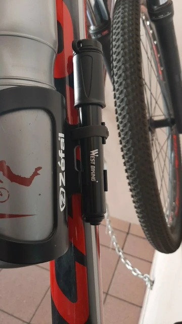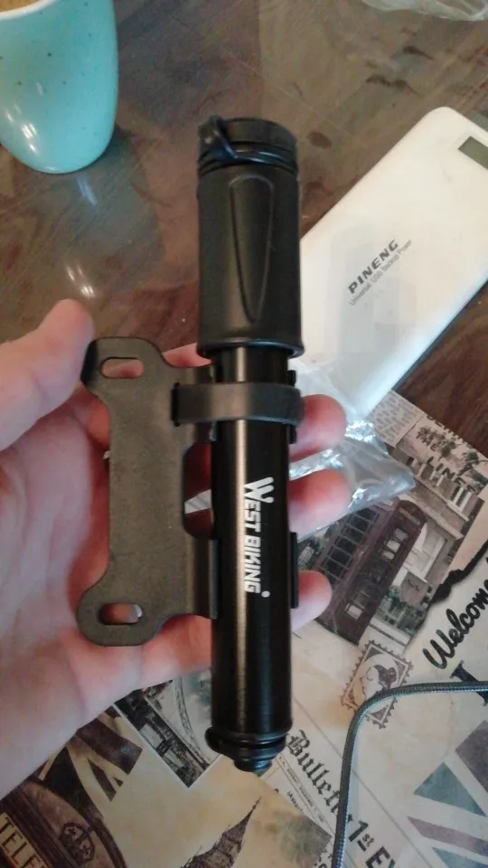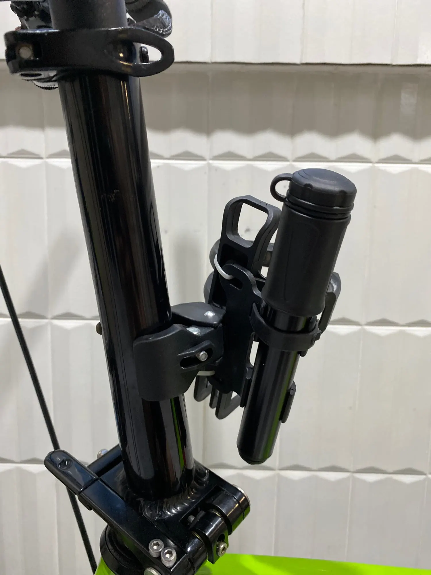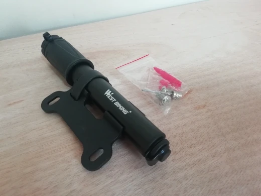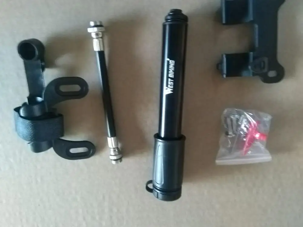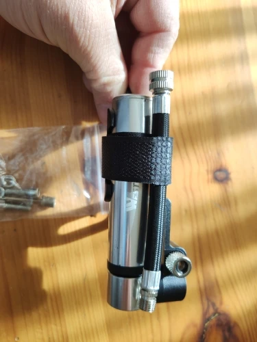 Удобный мини-насос для езды на велосипеде. Легко устанавливается на любые велосипеды! 2 винта для тех, кто может захотеть установить их на место хранения бутылки воды. Я решили завязать его с помощью галстука-обертывания, как показано на рисунке! Эффективный мини-насос!