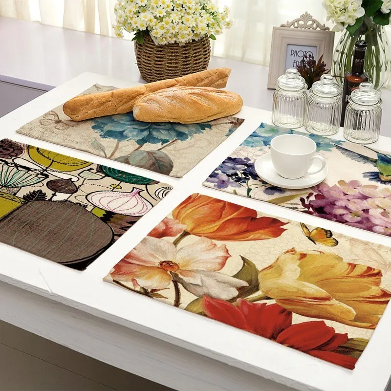 1 шт. милый кот цветочный узор обеденный Коврики на стол из хлопка ...