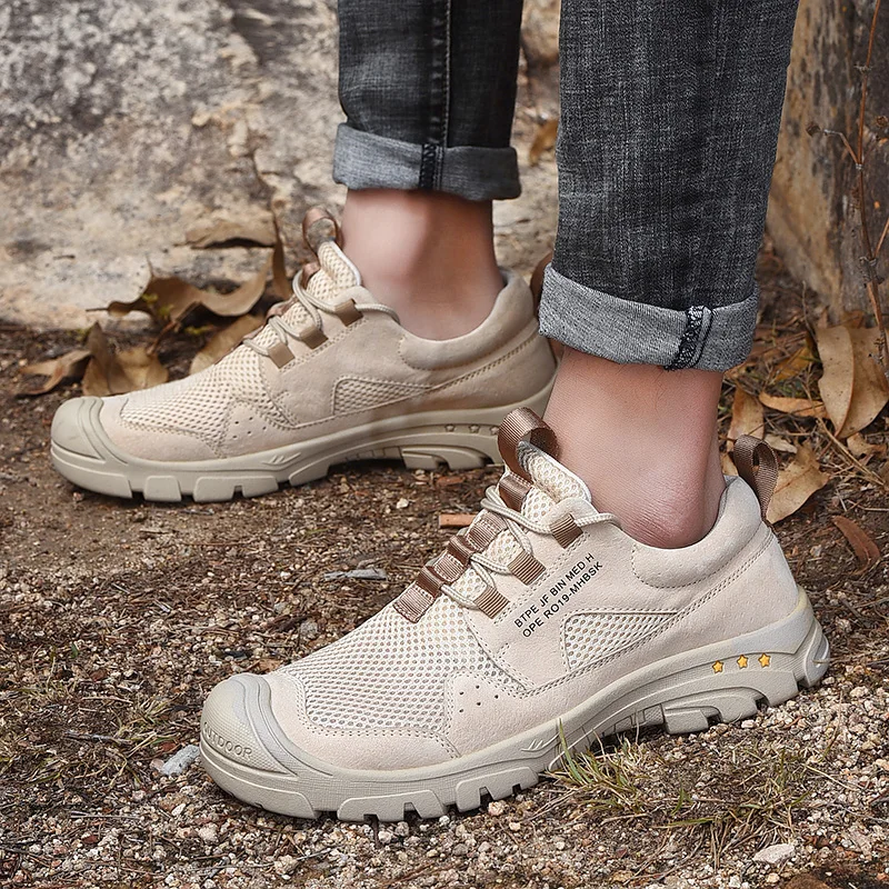 Мужские замшевые туфли на шнуровке, повседневная сетчатая обувь, водонепроницаемые, для прогулок и походов, большие размеры