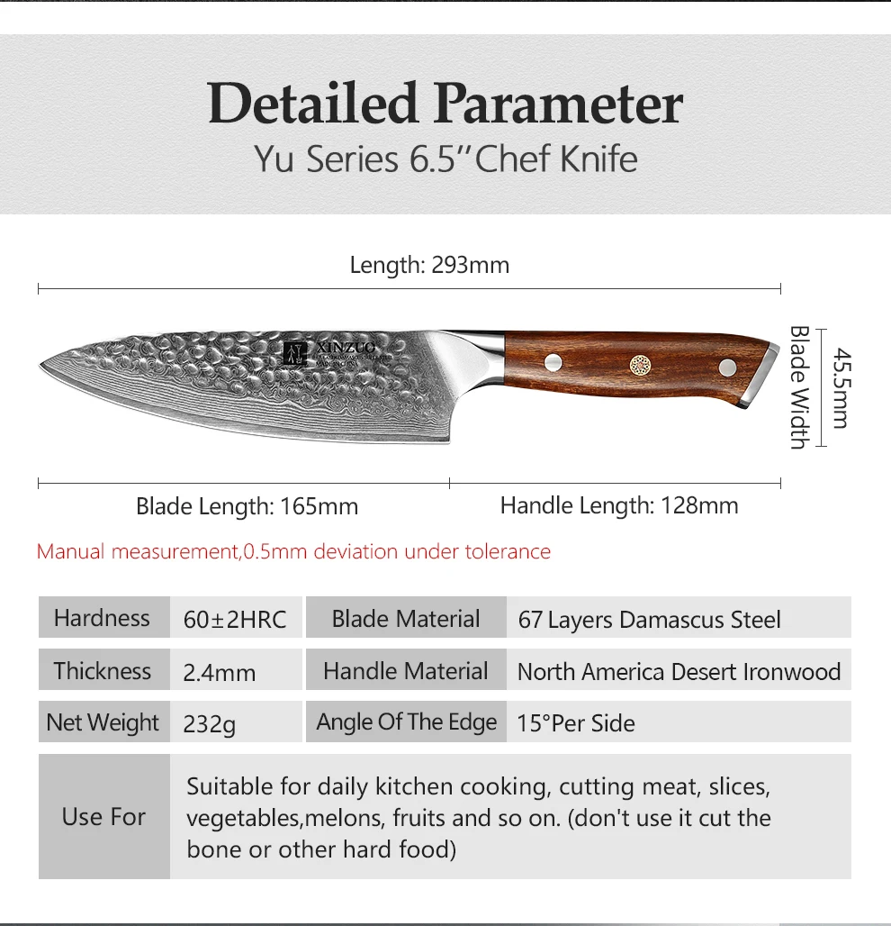 Нож шеф-повара XINZUO из дамасской стали 6,5 дюйма, острый кухонный...