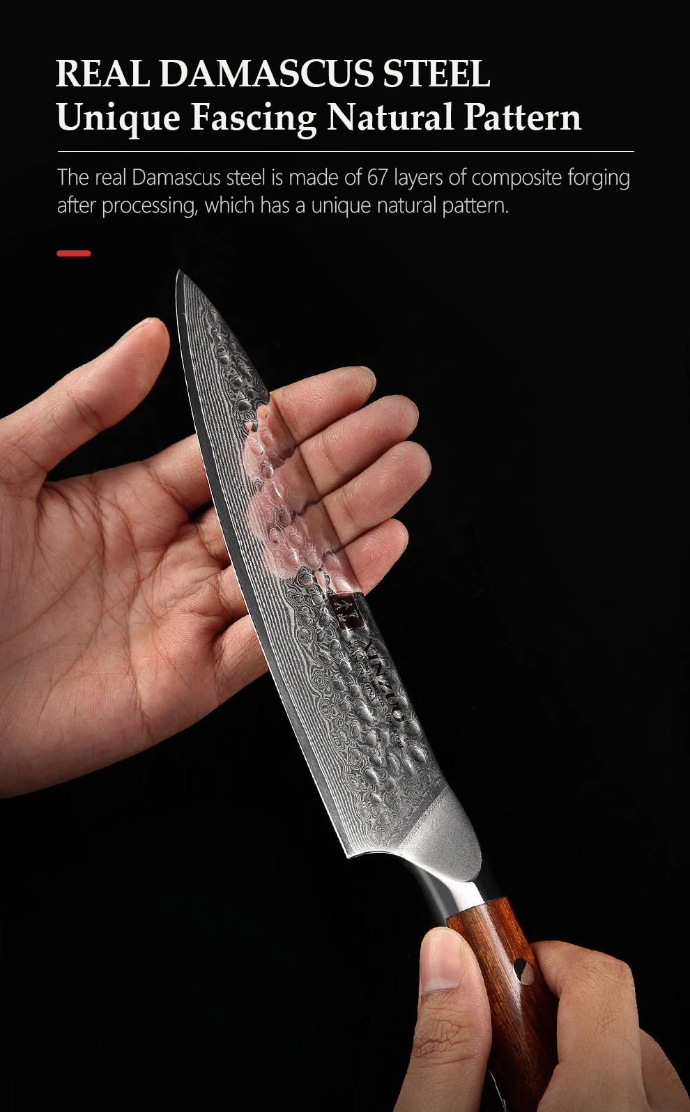 Нож шеф-повара из дамасской нержавеющей стали, 67 слоев, 5 дюймов