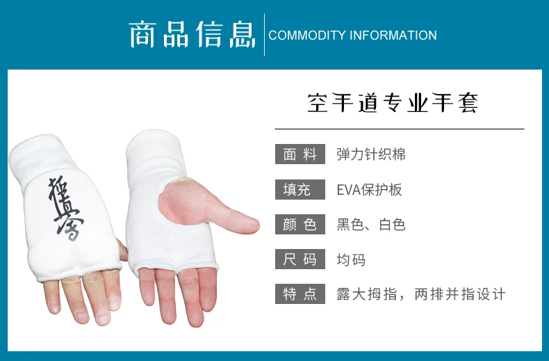 Цвет:Белый, черныйЭффект: большой палец увеличивает защиту, каратэ (тхэквондо) обучен использованию, легкий, удобный для ношения и защиты хорошей производительности, легко моется.