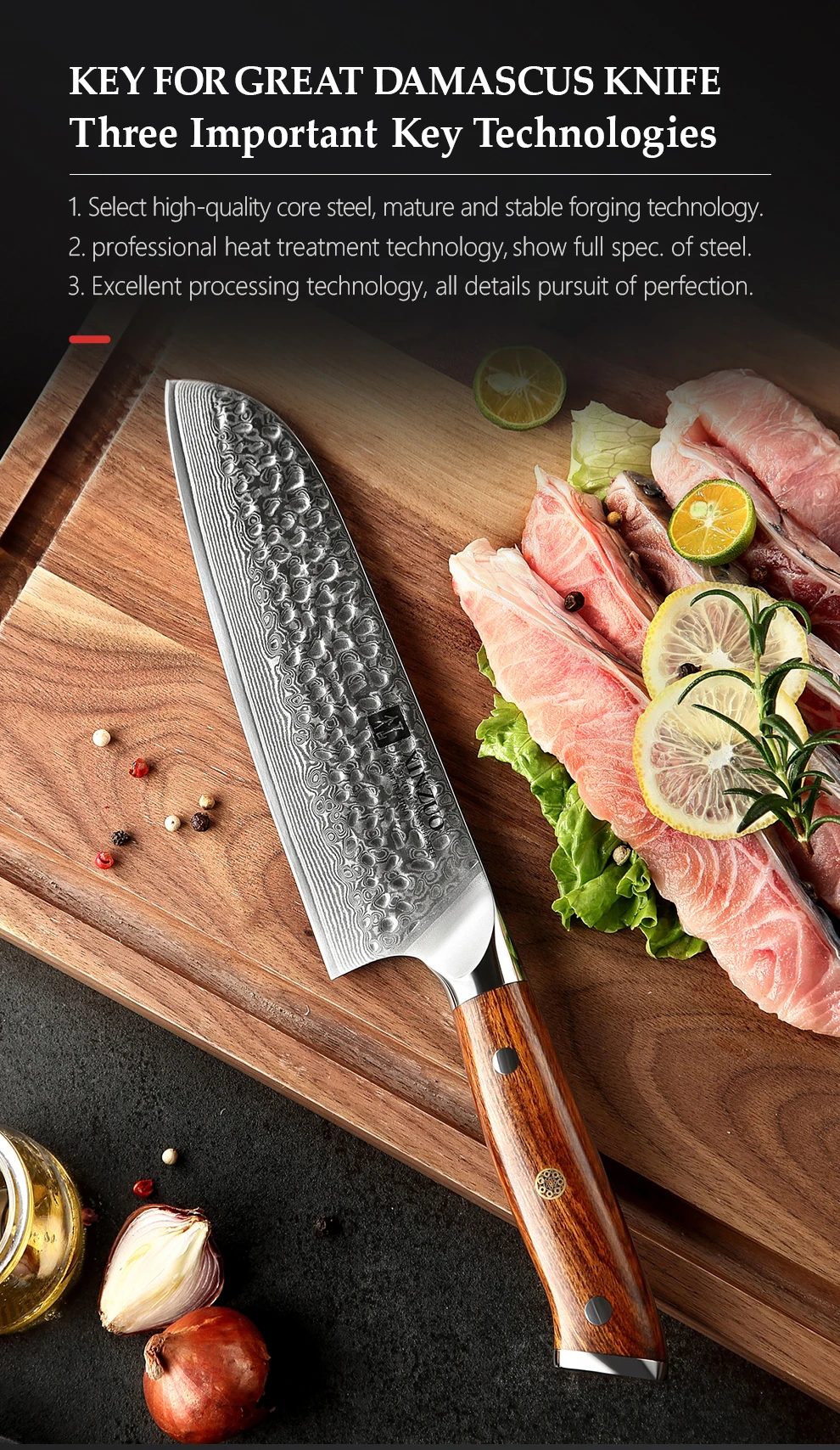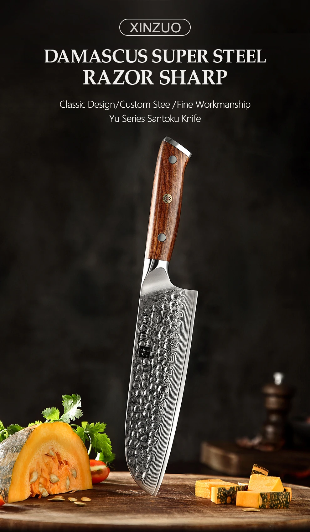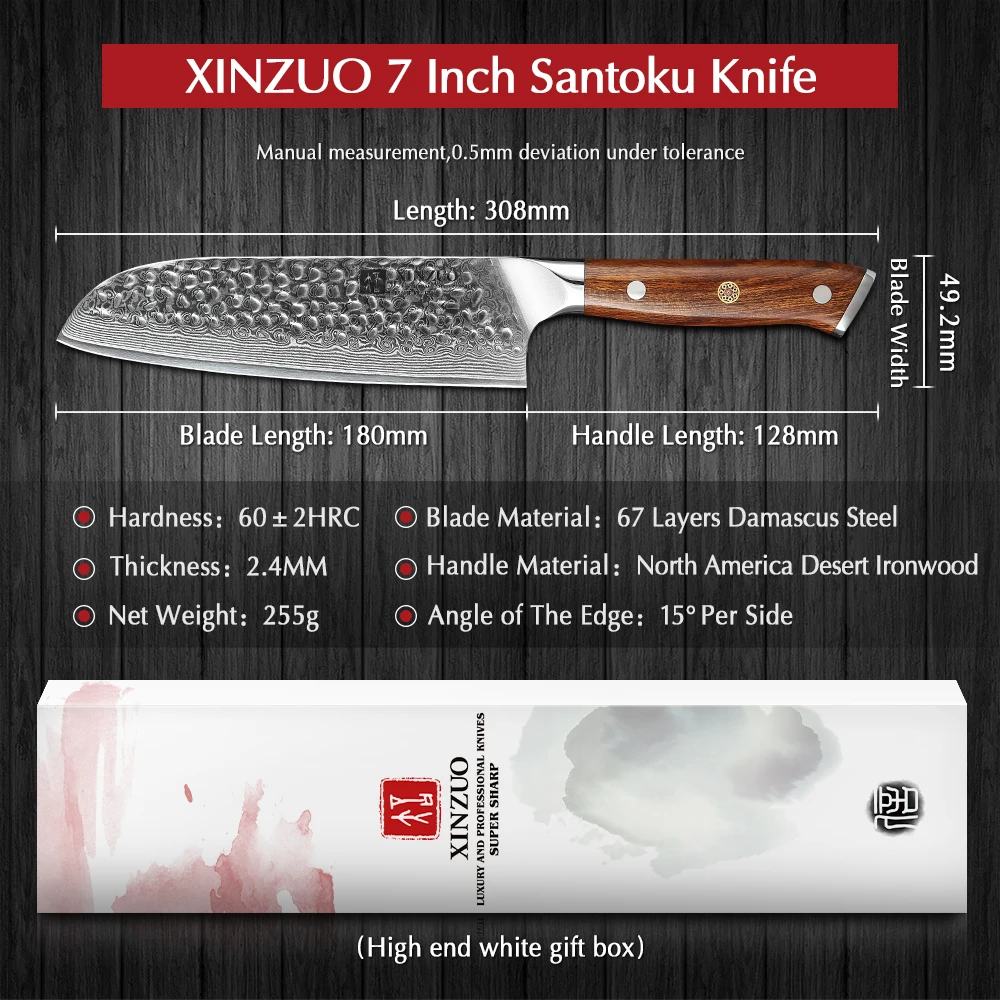 XINZUO Yu серия Дамасская сталь Santoku ножПродукт:7 дюймов нож сантоку