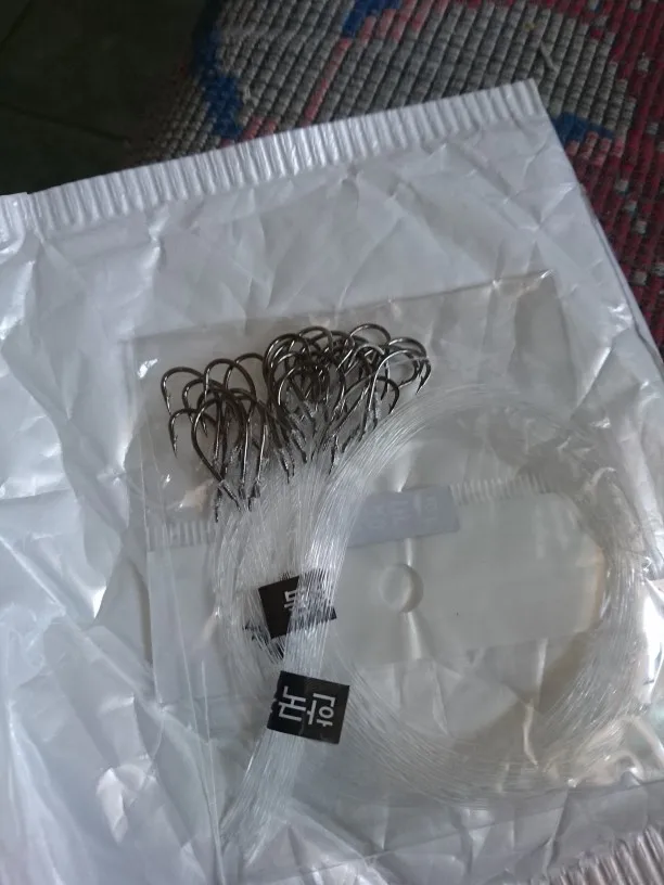 Почти два месяца доставка до М.О. Трек не отслеживался по РФ. Крючки острые, на конце не кольцо, а лопаточка. Поводок привязан неплохо. Единственное - прочность лески не оценивал. В целом, не считая скорости доставки, я доволен покупкой.