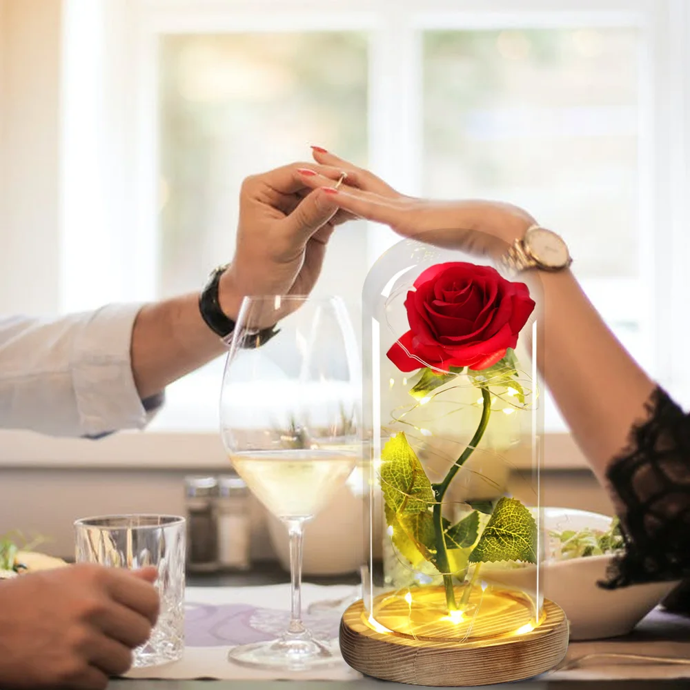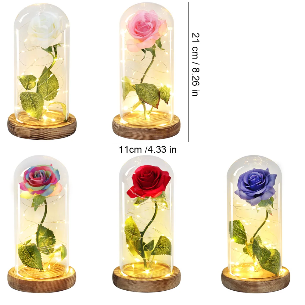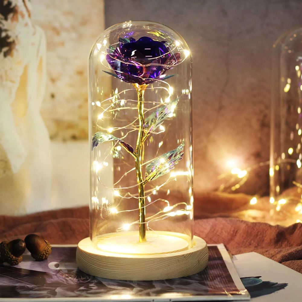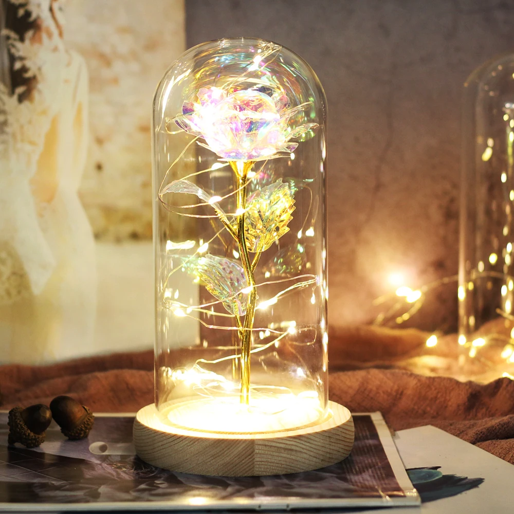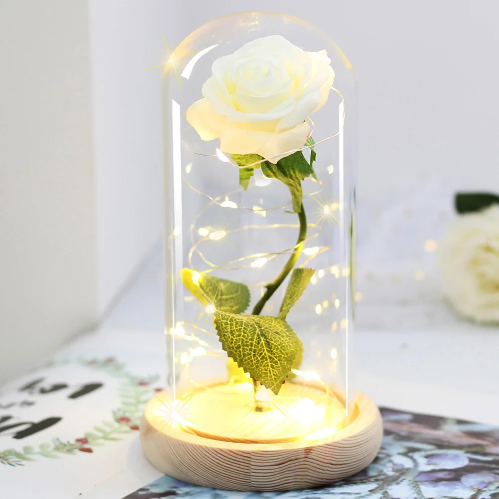 Вечная роза, рождественские подарки, искусственный цветок в стеклянном чехле светильник кой для Дня Святого Валентина, свадебный подарок с коробкой