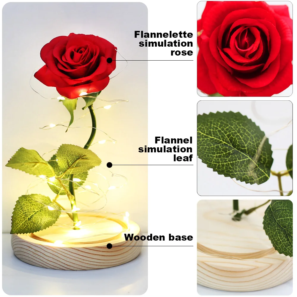 1. Используя высококачественное боросиликатное стекло, дисплей прозрачный и прочный.2. Питание от 3 батареек AAA (не входят в комплект). Низкое энергопотребление и длительный срок службы. Очень удобно носить с собой. Сделайте вашу комнату более интересной.3. Роза является символом любви. Это не только идеальный подарок для родственников, друзей или учителя, но и отличный основной предмет в гостиной или спальне.4. Создайте яркую и романтическую среду для семейных обедов, свадеб, вечеринок и т. д. очень подходит для изготовления рождественских украшений.5. Очень подходит для Дня Святого Валентина или рождественских свадеб, дней рождения и подарков.