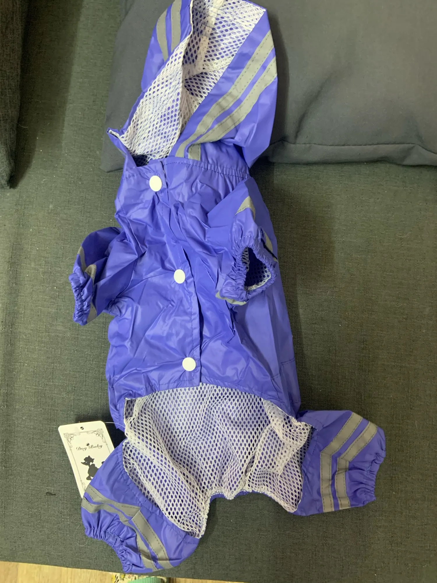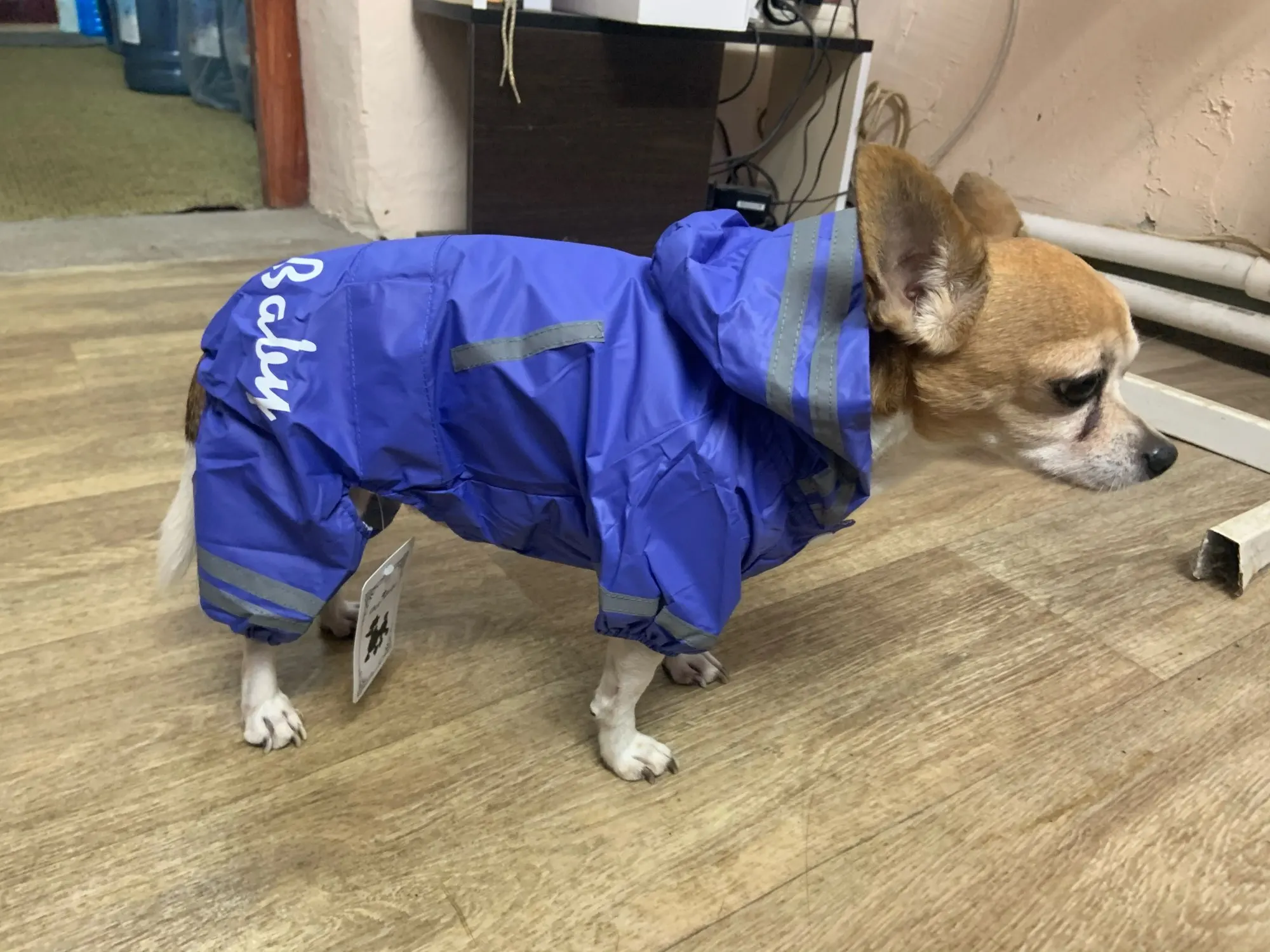 очень удобный,симпатичный дождевик на подкладке(сеточка)на йорка весом 2.700кг подошел размер м.