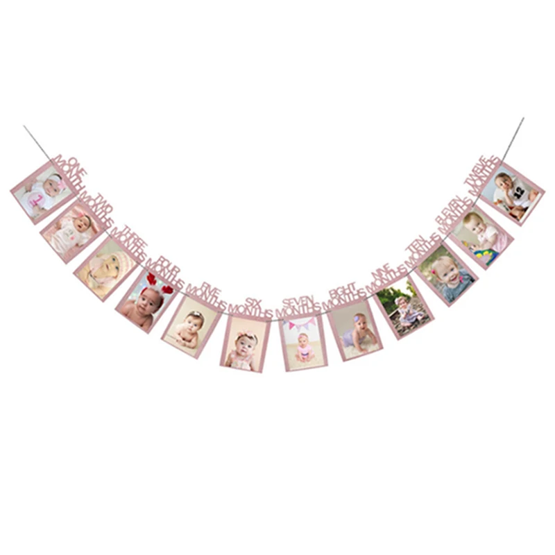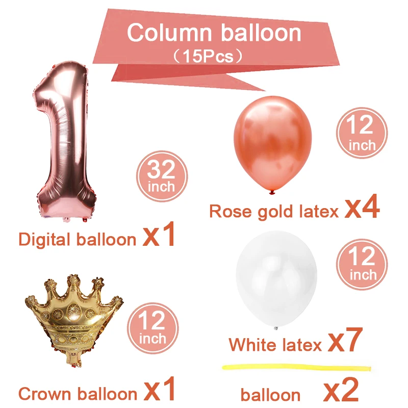 Баннер с шариками в виде цифр для первого дня рождения, 1 год, розовое золото, воздушный шар из фольги