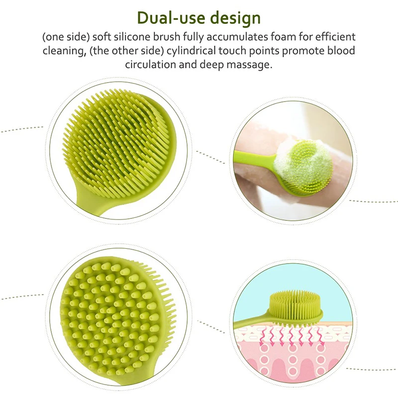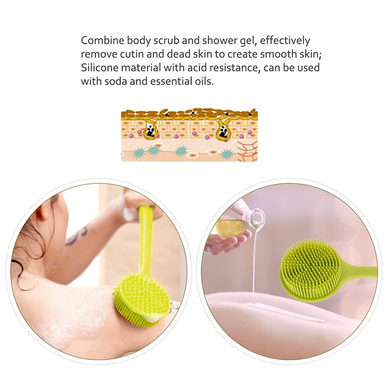 Мягкая силиконовая кисть с длинной ручкой для спины скруббер для ванны и душа для тела, кисти для спа-массажа, здоровый уход за кожей, аксессуары для ванной комнаты 35