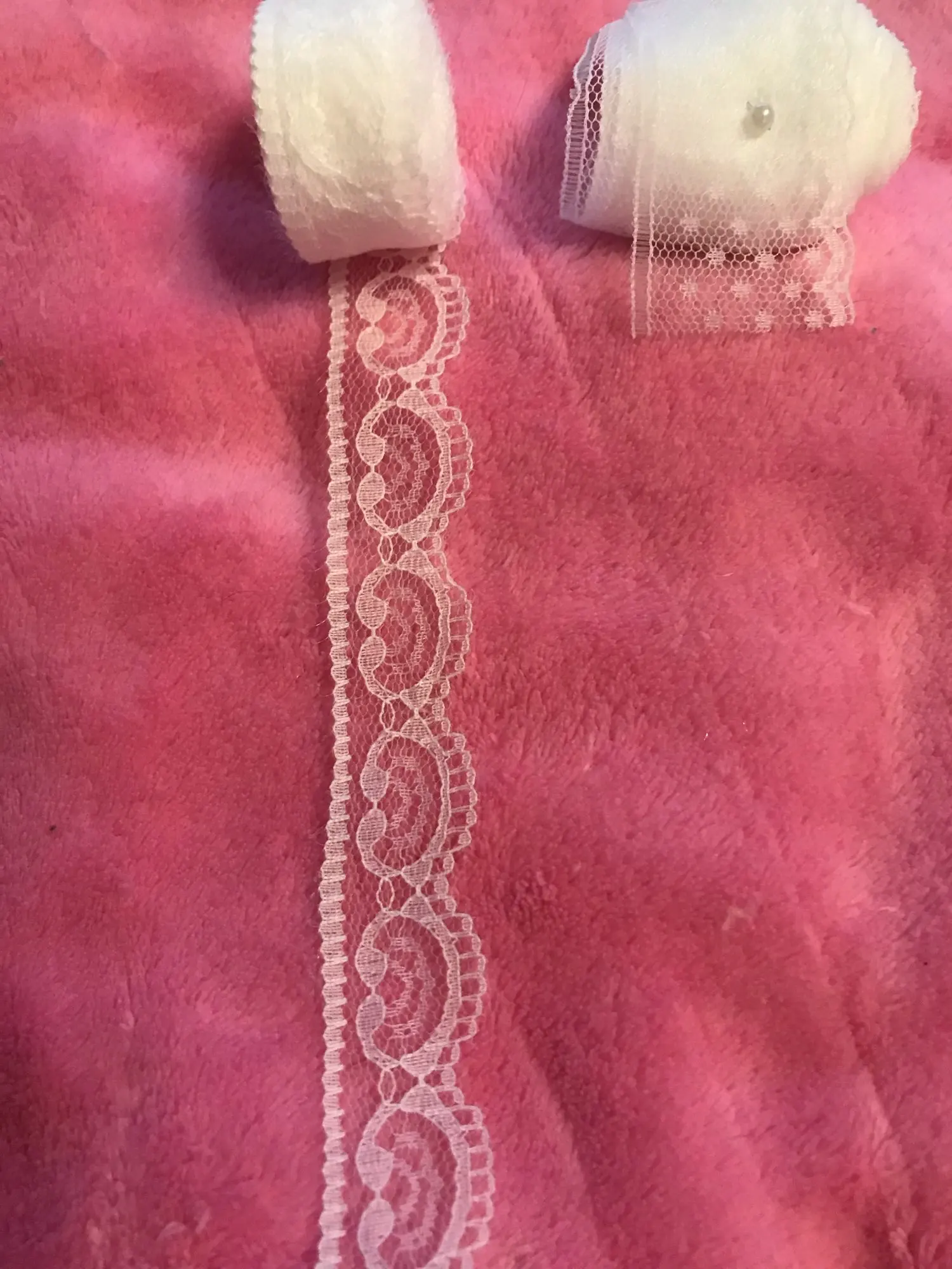 Заказ сделан 11 января, продавец отправил 13 января, доставка в Москву 27 января. Кружево было свернуто в рулончик, закреплено портновской булавкой и помещено сразу в почтовый пакет, без промежуточной упаковки. Кружево достаточно жесткое, выглядит неплохо. Длину не измеряла. Цена на день покупки была 52.64₽.