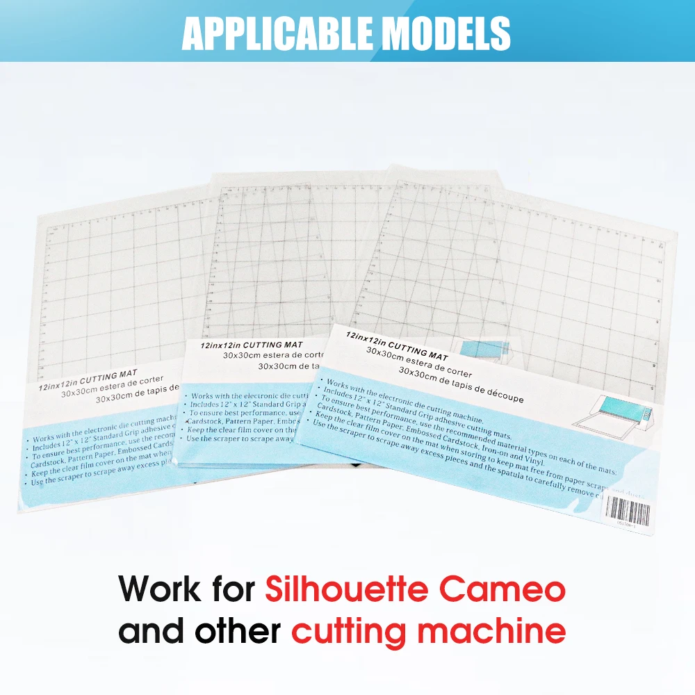 2. Этот коврик для резки (30,8 см * 30,8 см/12 дюймов * 12 дюймов) с липкой поверхностью совместим с электронным режущим инструментом.