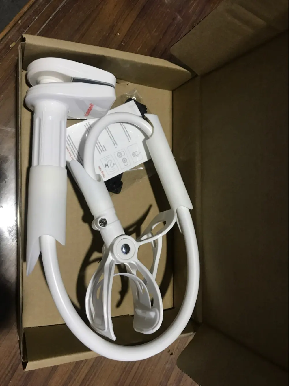 Очень быстрая доставка, привез курьер. Держатель не хлипкий, действительно стоит этих денег. Я очень довольна! Фото добавлю после того как установим кроватку. При проверке махали кронштейном с камерой из стороны в сторону, держится очень крепко!
