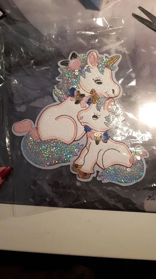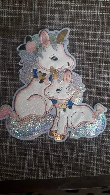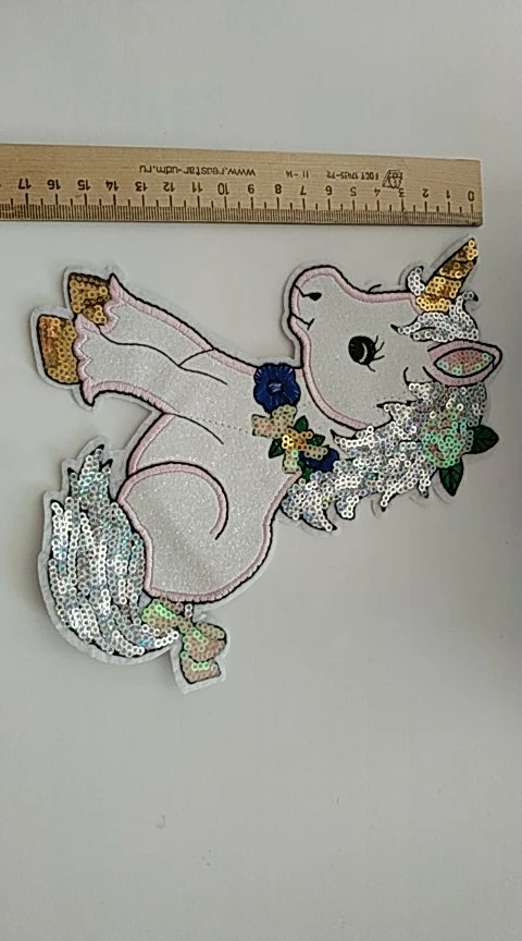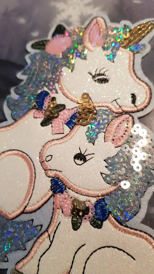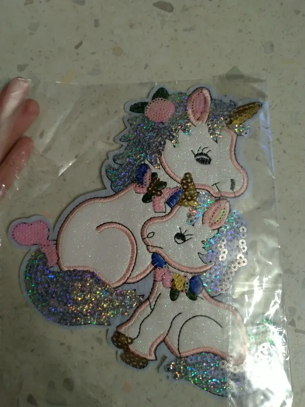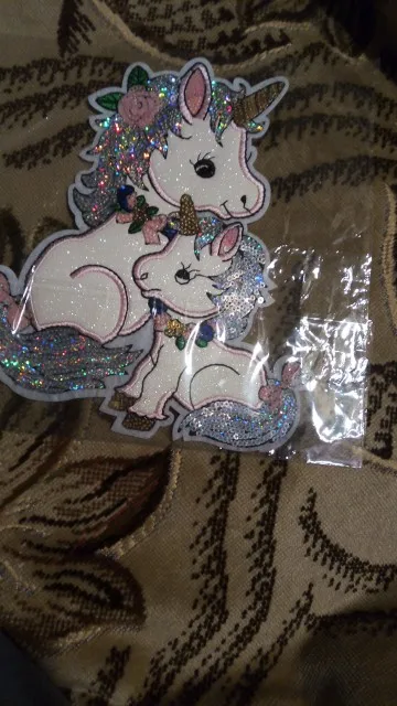 Очень красивая наклейка-патч, украшу однотонную кофточку дочке. Блесточки, пайетки, вышивка - все красиво и аккуратно. Утюгом с изнанки пригладить и по краю лучше пришить незаметно (а то все патчи после стирок отклеиваются частично, если пришить по краю такого нет). Покупала за 1,5$ Рекомендую
