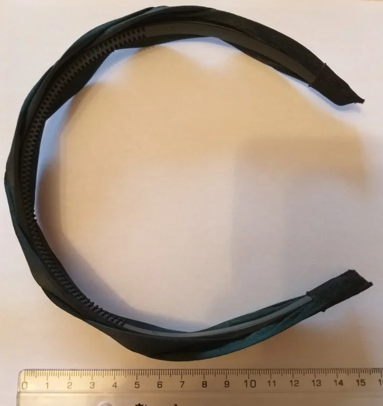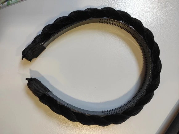 Отличный обруч. Мягкий, нигде не жмет. Хорошо держит волосы, внутри есть резьба(зубчики). Упакован был просто в пакетик, повезло, что в дороге не сломался. Цвет думала будет немного светлее, оказался темноват. Фото прикрепляю