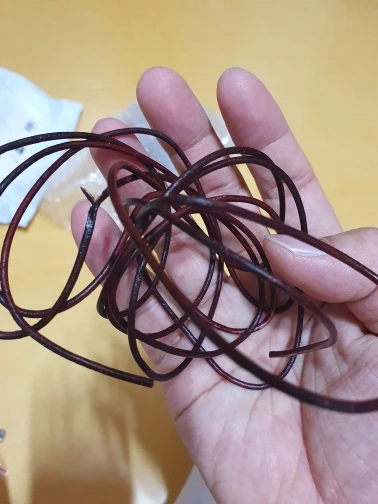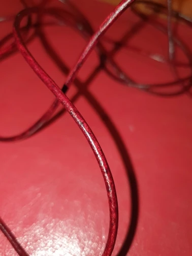 Шнурок твердоват, обработал оливковым маслом-сразу есть разница, мне 2 мм тонковата для шейного, следующий раз возьму 3мм, да -есть запах, но мне он не мешает.