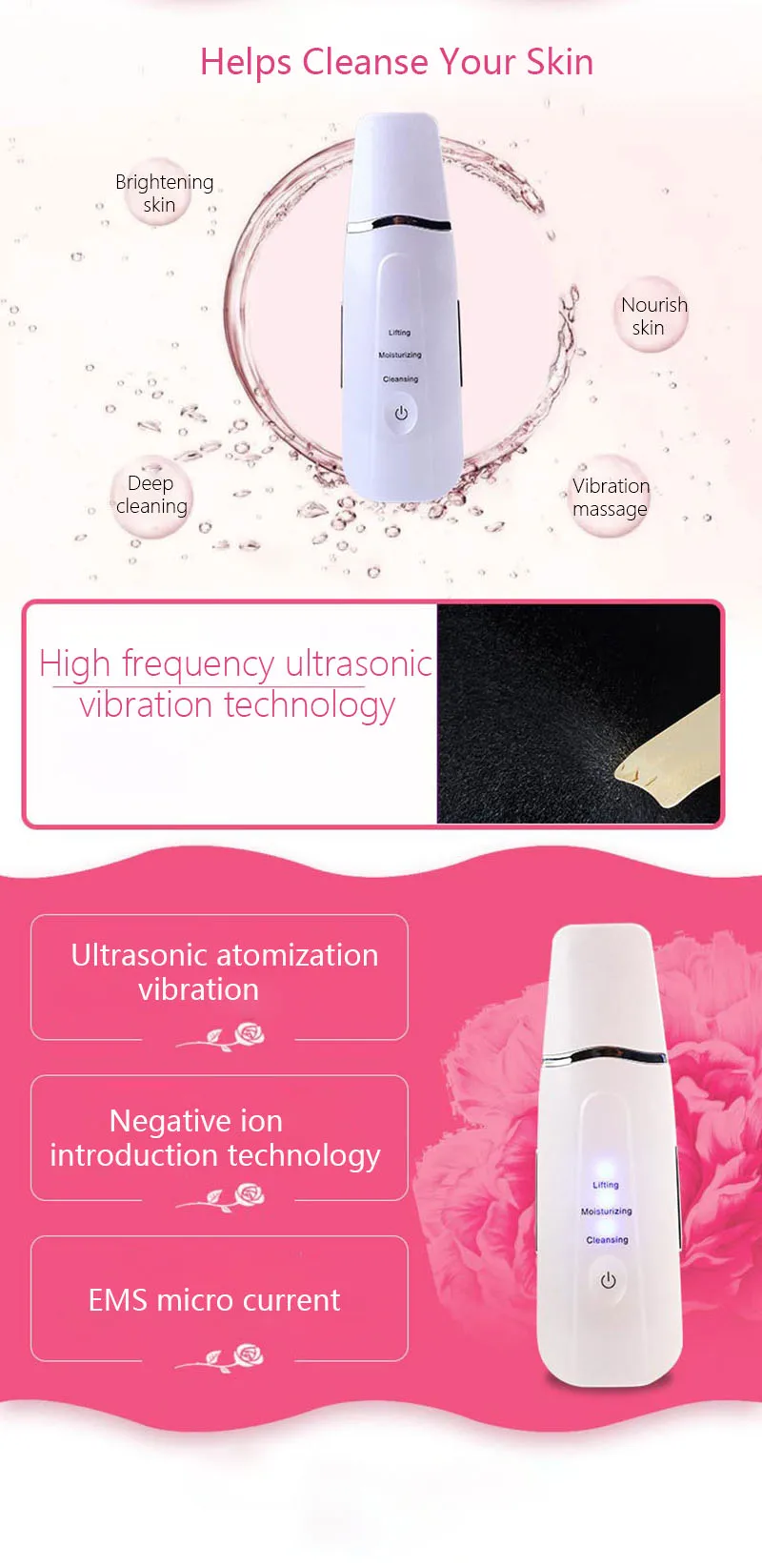 Перезаряжаемый ультразвуковой ионный скраб для кожи лица Очиститель лица очищающий шпатель пилинг Вибрация удаление черных точек отшелушивающий