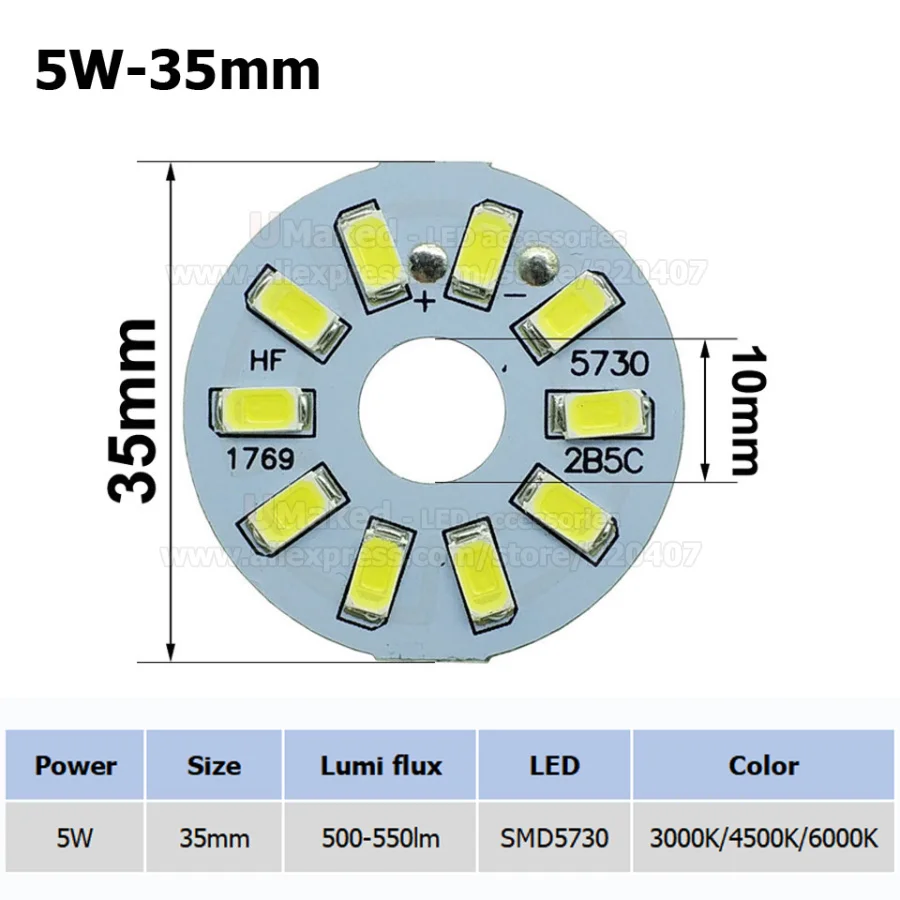 Светодиодный светильник, 5 Вт, 35 мм, 550 лм, с чипами smd5730