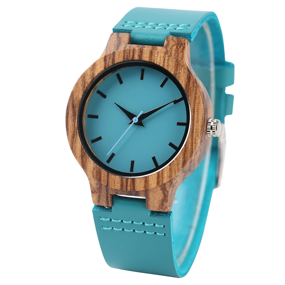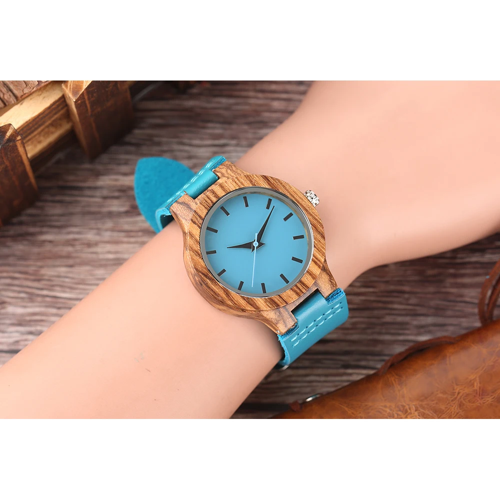 Женские кварцевые часы из дерева, синие часы из натуральной кожи, современные минималистичные деревянные бамбуковые женские часы, повседневные часы, лучшие подарки