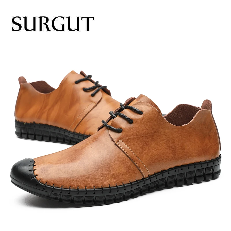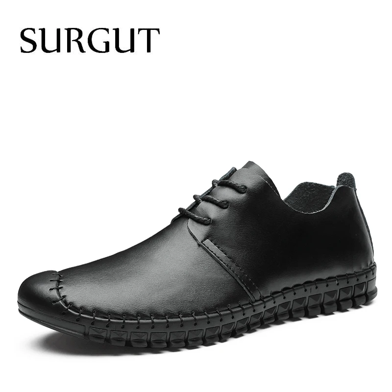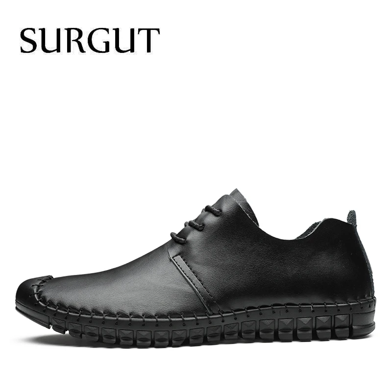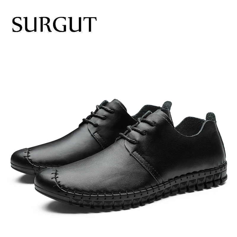 Мужские дышащие лоферы на шнуровке SURGUT, черные повседневные Мокасины из натуральной кожи, мягкая обувь на плоской подошве для вождения летом, 2021