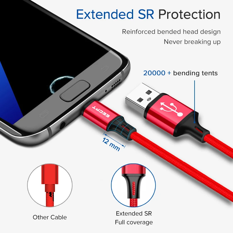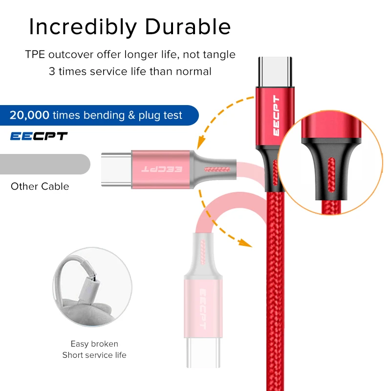 Кабель USB Type-C EECPT для Huawei P20 Lite, P30, Samsung S9, Xiaomi, Redmi Note 7