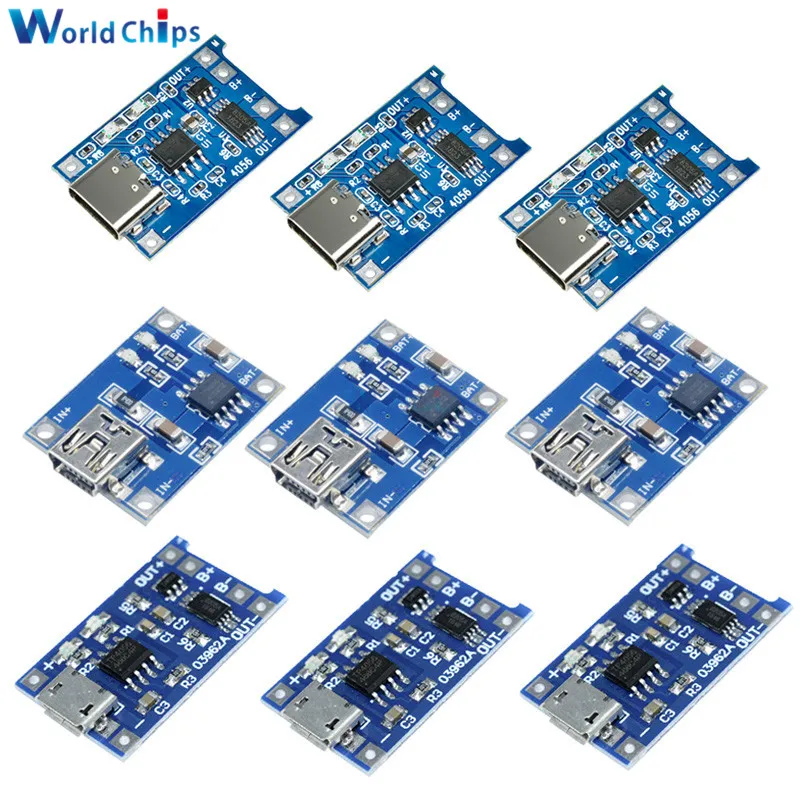 Зарядная плата с разъемами Type-C Micro USB, 5 В, 1 А, li-ion 18650...