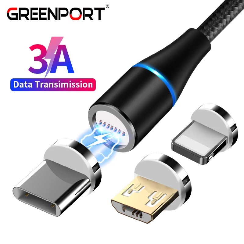 Магнитный кабель GREENPORT для iPhone xs max, зарядное устройство с Micro USB, провод типа C, 3 А, USB-C кабель для быстрой зарядки и передачи данных, Huawei, Samsung S9