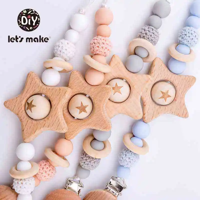Давайте сделаем Детские пустышки 1 шт. бука звезда деревянный зажим крючком бусины с мешком BPA бесплатно держатель соски пустыш